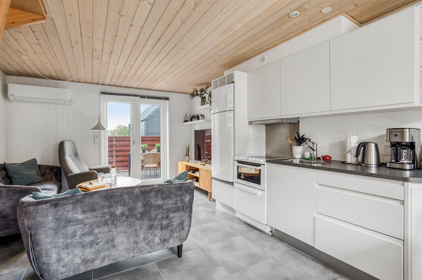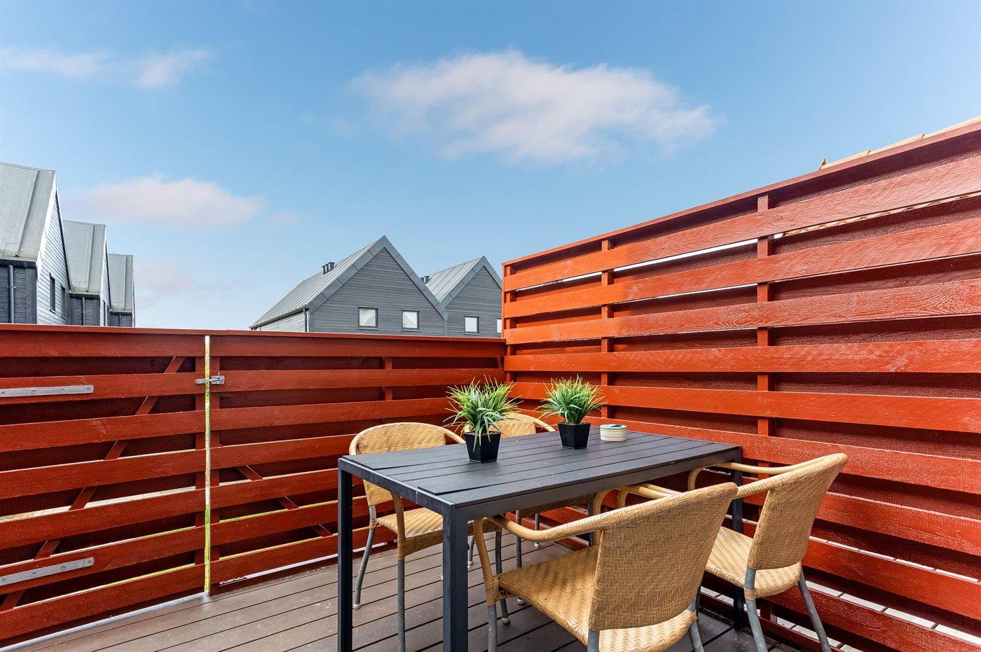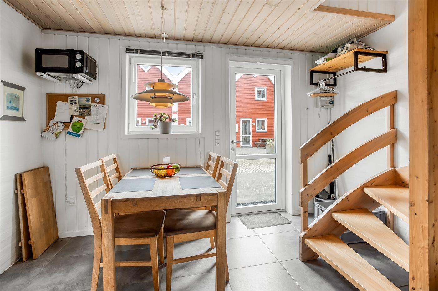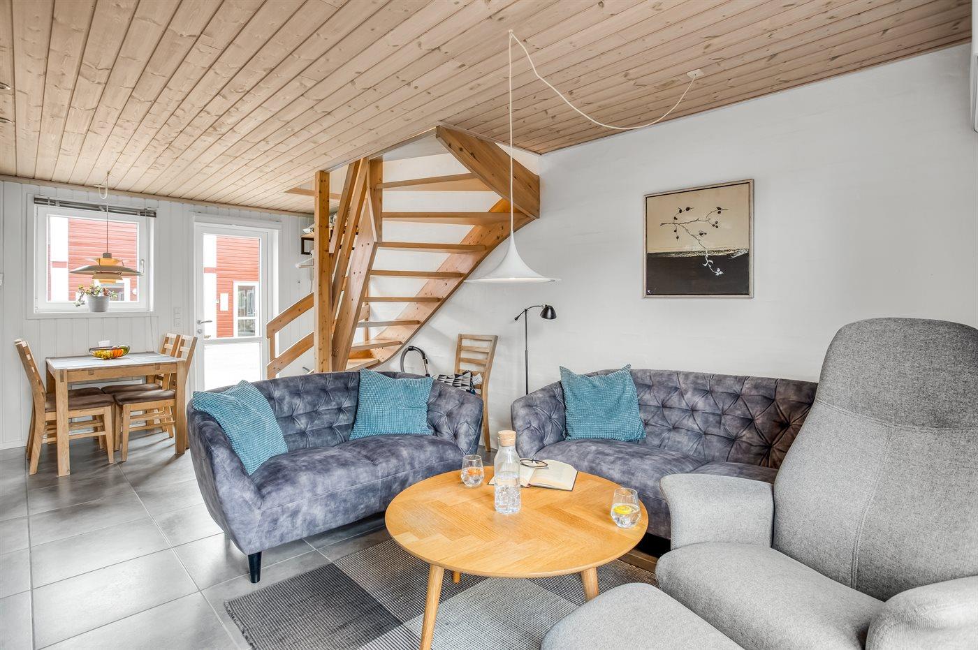 Ein schönes und gemütlich eingerichtetes Ferienhaus. Der 1. Stock ist mit zwei Schlafräumen, Badezimmer und eine Leiter, die in das offene Obergeschoss führt, eingerichtet.Terrasse gegen Westen. Gemeinsame Sandbox und Schaukel verfügbar.