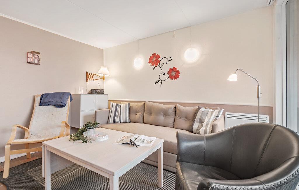 Verbringen Sie Ihren Urlaub in dieser kompakten Ferienwohnung, im Erdgeschoss eines Komplexes mit mehreren Ferienwohnungen und ein paar hundert Meter vom Strand, dem Golfplatz, Minigolfplatz, dem Tennisplatz und dem Restaurant entfernt. Sie wohnen in dieser individuell eingerichteten Wohnung und können Ihren Ferienalltag in dieser hübschen Wohnung voll auskosten, ohne etwas zu vermissen und sich entspannen sowie Ihren Morgenkaffee auf dem Balkon genießen.