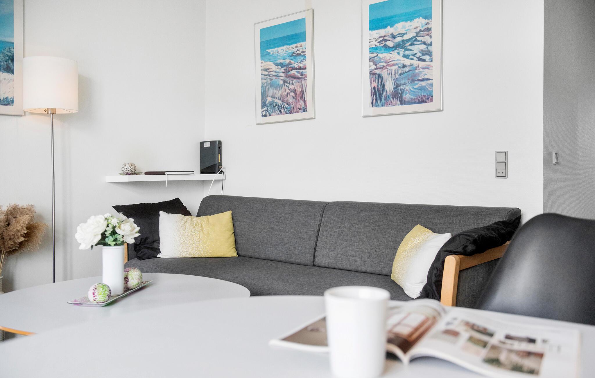 Willkommen in Fanø Bad und dieser hellen und liebevoll dekorierten Ferienwohnung, die Ihnen als Paar ein schönes Zuhause bietet. Kommen Sie hier an und fühlen Sie sich wohl. Im offenen Wohnraum finden Sie alles vor, was Sie für Ihren unbeschwerten Urlaub brauchen. Zaubern Sie sich am Morgen ein leckeres Frühstück und machen beim Essen Pläne für Ihre Aktivitäten und Ausflüge auf der Insel. Am Abend können Sie auf dem Sofa Ihre Beine hochlegen, sich entspannen und gemeinsam einen unterhaltsamen Film schauen.