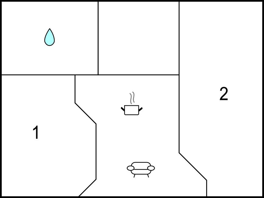 Badezimmer (nr. 1) - WC. Warmes und kaltes Wasser. Dusche
