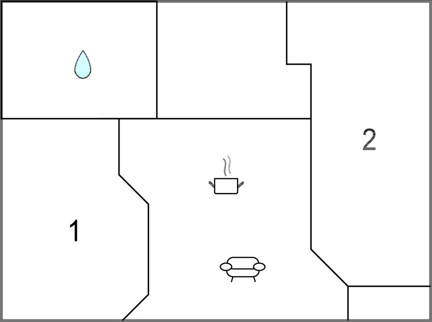 Badezimmer (nr. 1) - WC. Warmes und kaltes Wasser. Dusche
