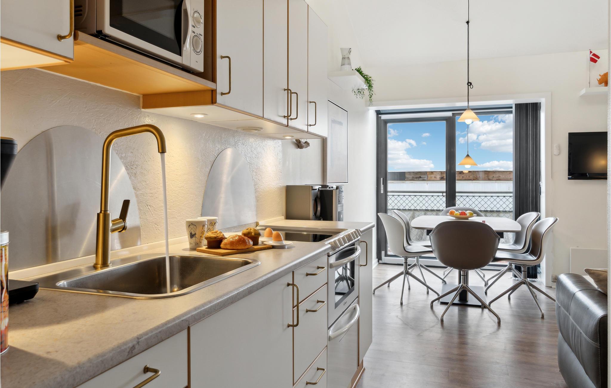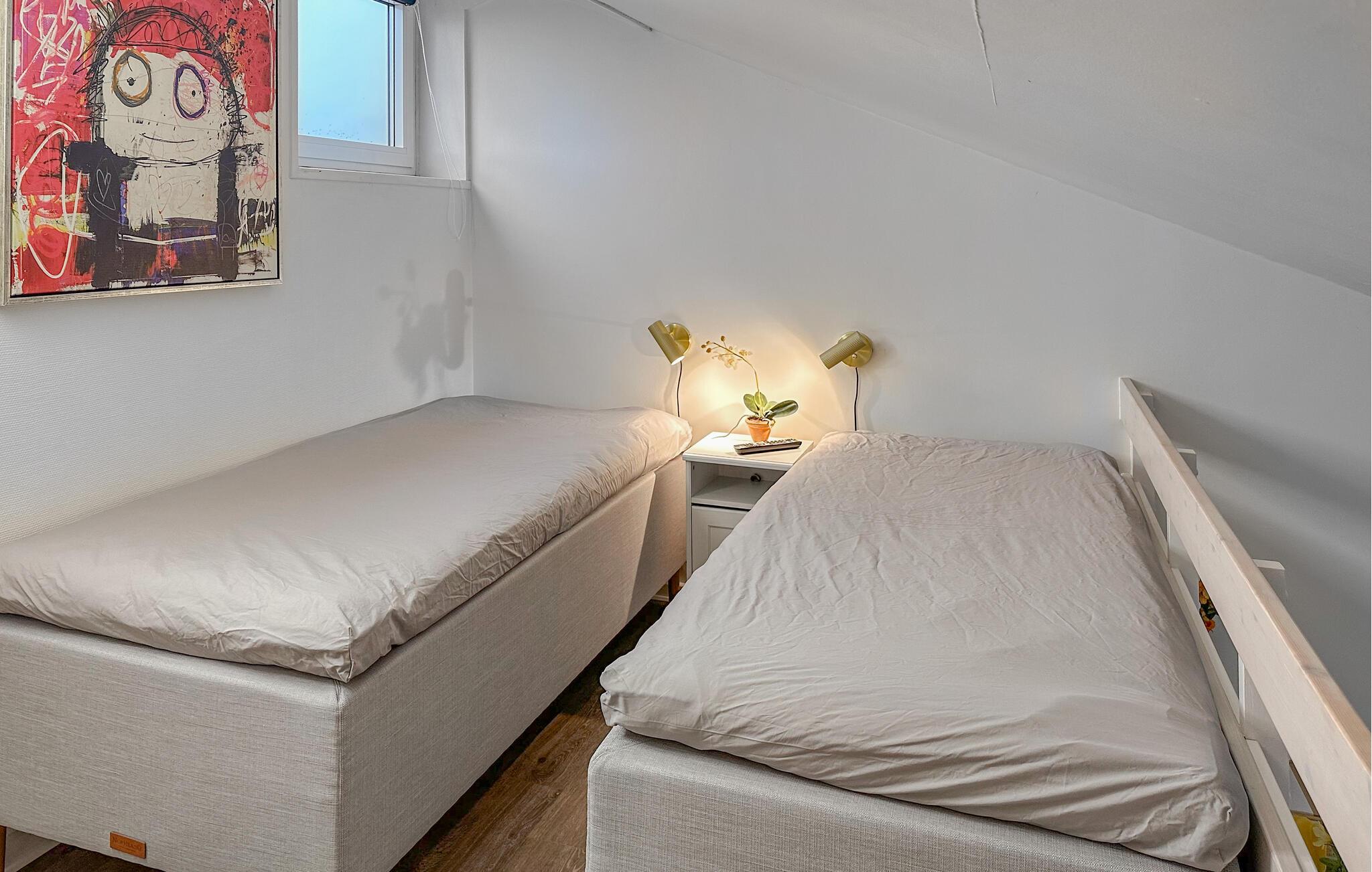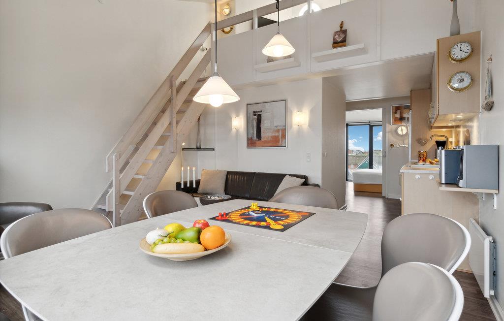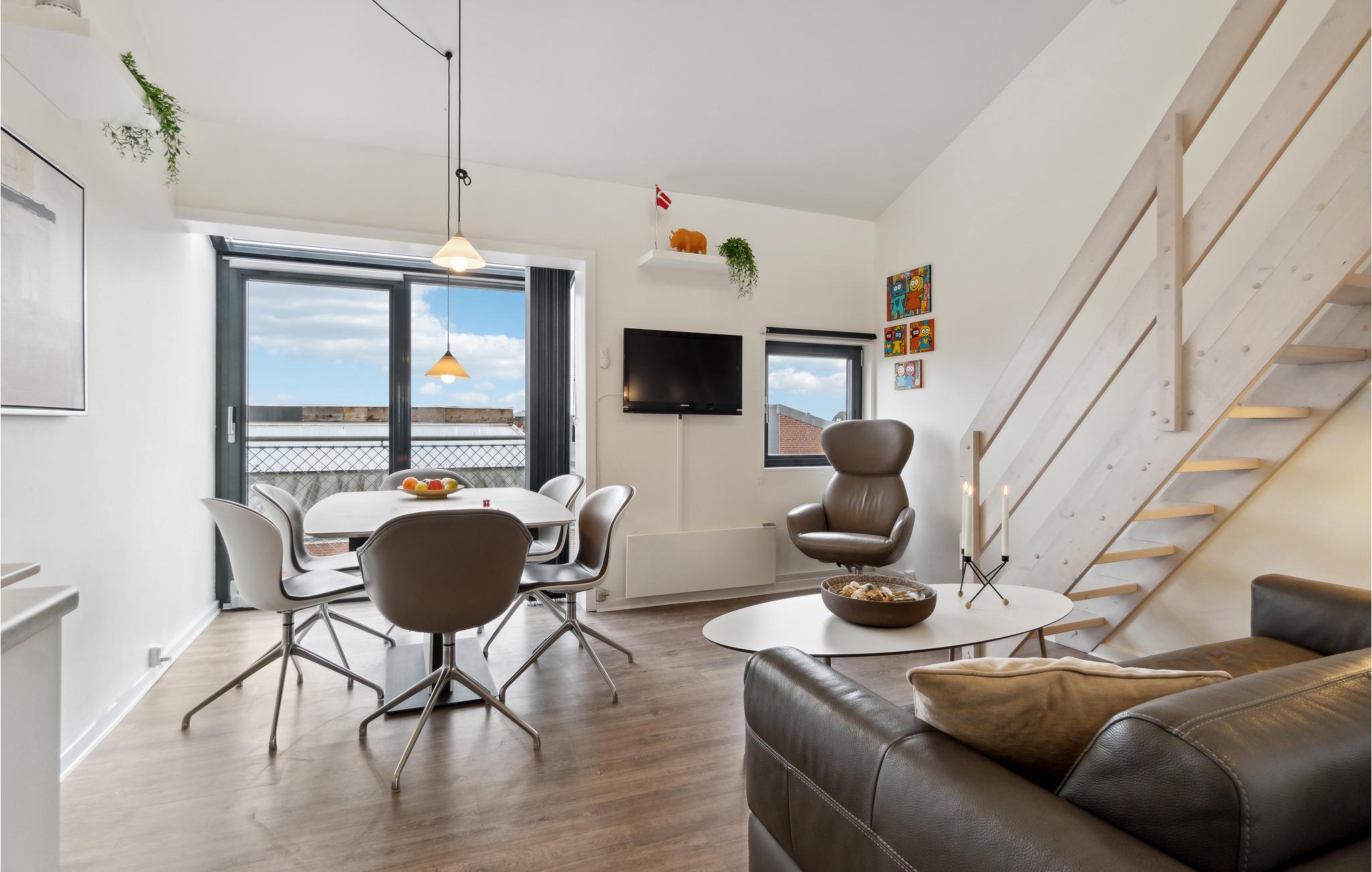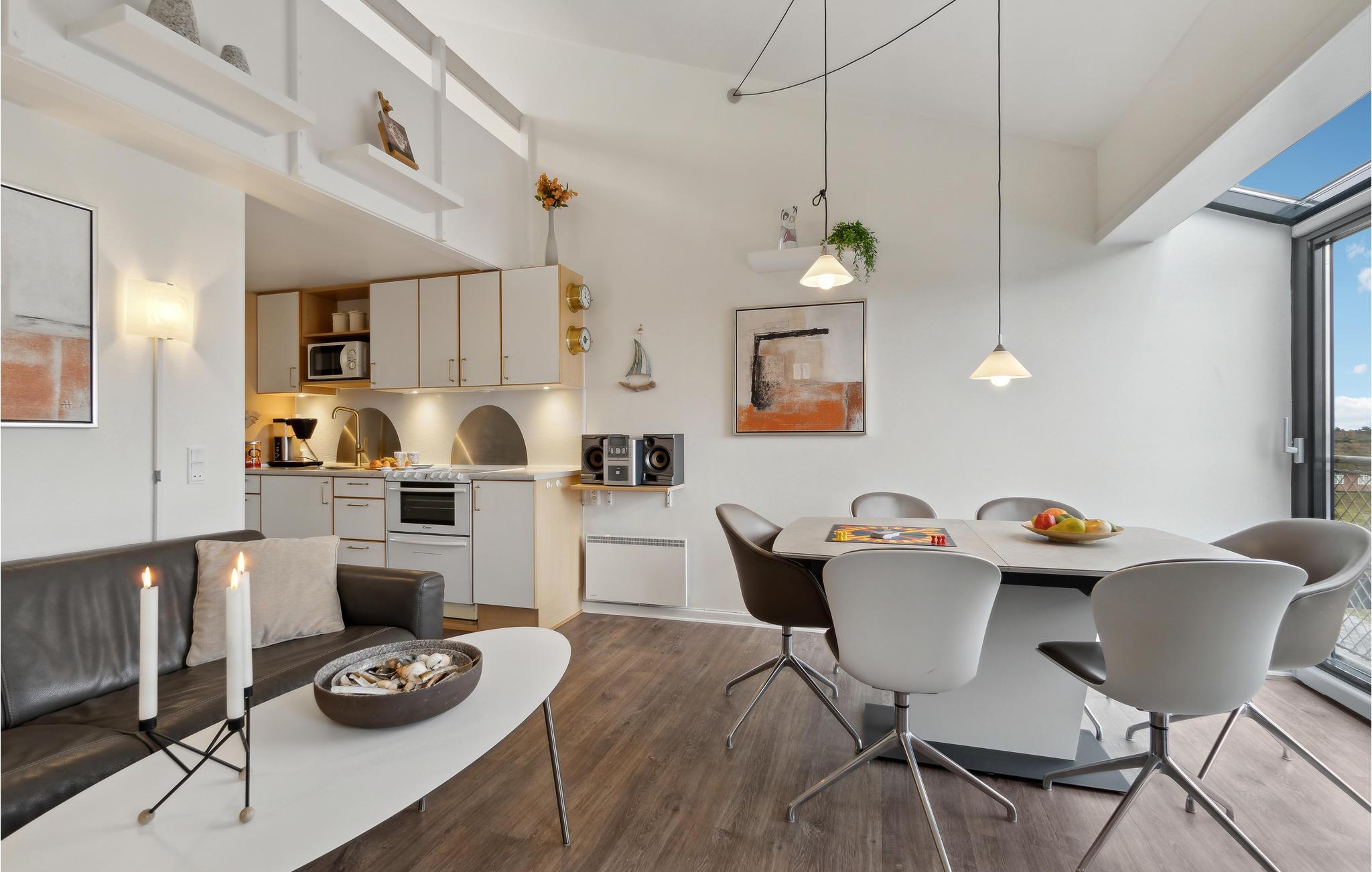 Diese modernisierte Ferienwohnung liegt nur wenige Schritte vom weiten Sandstrand von Fanø entfernt und bietet Ihnen ein stilvolles Ambiente. Der offene Wohnraum ist geschmackvoll mit Designermöbeln eingerichtet und sorgt mit liebevollen Details, Kunst an den Wänden und großen Fenstern für eine behagliche Atmosphäre. Starten Sie den Tag mit einem Frühstück in dem lichtdurchfluteten Wohn- und Essbereich und genießen Sie die frische Brise auf dem französischen Balkon. Der modern gestaltete Dachboden bietet Ihnen zusätzlichen Komfort mit einem Design-Ventilator, der das Klima angenehm hält.