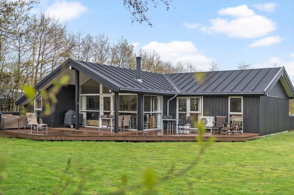 Klingt eine Morgendusche unter freiem Himmel verlockend? Das ist genau das, was du bekommst, wenn du ein Handtuch über die Schulter wirfst und zur Außendusche im Terrassenbereich gehst. Alternativ kannst du dir einfach eine Tasse Kaffee zubereiten und sie draußen genießen, um die Ruhe und die Sonne zu genießen, während das Haus und die Umgebung erwachen. Rund um das Ferienhaus gibt es mehrere schöne Sitzplätze, einschließlich überdachter Bereiche, wenn du tagsüber Schatten möchtest oder abends vor dem Tau geschützt sein möchtest. Der Rasen ist groß, sodass hier viel Platz zum Ballspielen und Toben ist, und die kleinsten Kinder haben sogar einen Spielplatz mit Rutsche und Schaukel.