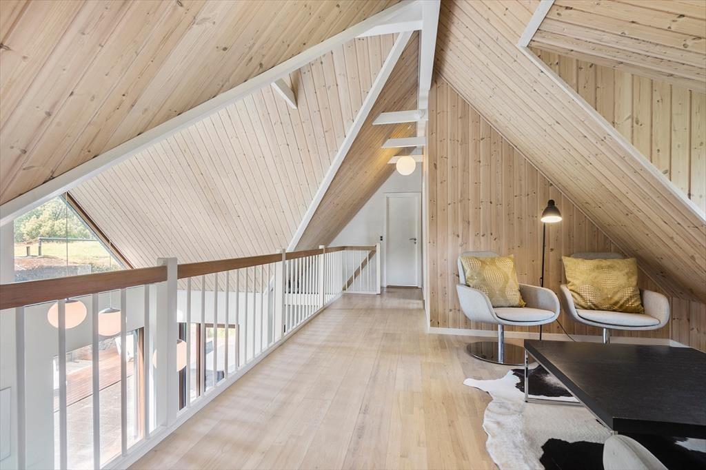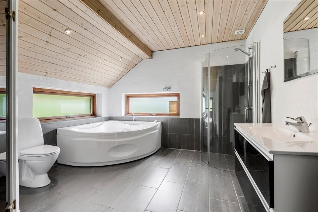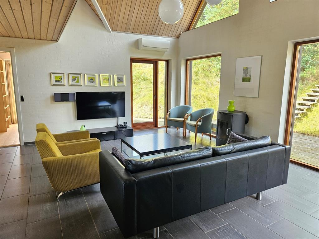 Dieses 155 m2 große Ferienhaus wurde 2007 erbaut und verfügt über eine elegante und komfortable Einrichtung mit modernen Möbeln und schönem Design. Die Raumaufteilung macht das Haus ideal für zwei Familien, denn die vier Schlafzimmer und zwei Badezimmer sind gleichmäßig auf zwei Etagen verteilt - und im Obergeschoss findest du sogar eine kleine Aussichtsstube, während das Erdgeschoss einen gemütlichen Aufenthaltsraum mit integrierter Küche bietet. Egal, wo du dich befindest, drinnen ist es wunderbar: Ist es draußen kühl, kannst du den Kamin anmachen oder dich mit warmen Whirlpoolbädern und Saunagängen entspannen. Und wenn draußen die Sonne scheint, kannst du das schöne Licht durch die Fenster genießen, es sei denn, du verbringst deine Zeit komplett draußen auf dem herrlichen Naturgrundstück.