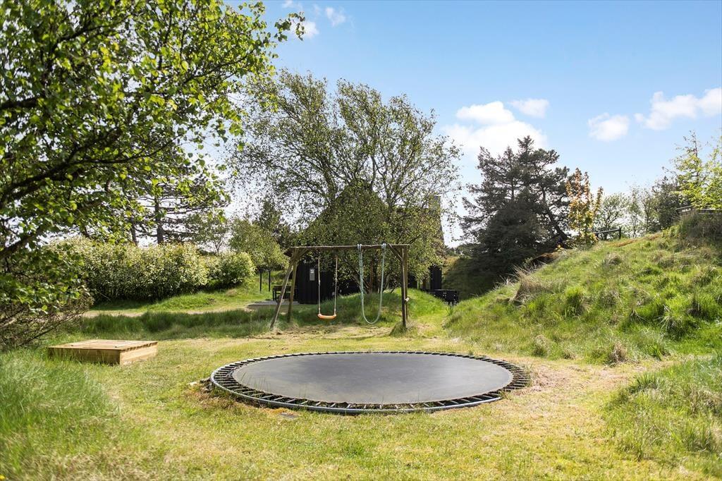 Die Außenbereiche sind etwas Besonderes, denn das bewaldete Grundstück ist hügelig, und ein alter Bunker ist sogar in das Gelände integriert. Wenn du die Aussicht über die Landschaft genießen möchtest, kannst du dich auf die Spitze setzen, und auch die nächsten Terrassen des Hauses sind schöne Plätze zum Verweilen - zum Beispiel auf dem nach Süden ausgerichteten Bereich, wo du in ungestörter Umgebung die Sonne genießen kannst. Es wird sicherlich spannend für die Kinder sein, zwischen den Pflanzen des Naturgrundstücks zu spielen und zu erkunden, und für die Kleinsten gibt es sowohl eine Schaukel als auch einen Sandkasten, damit sie sich vergnügen können.