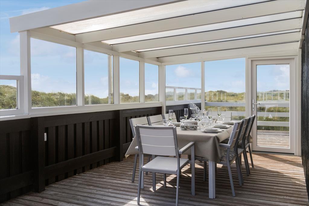 Die Außenbereiche sind einfach wunderbar: Wer möchte nicht auf einem großen Dünengrundstück mit freiem Blick auf die schönen Sonnenuntergänge entspannen und direkten Zugang zum Strand haben? Eine schöne Terrassenlandschaft erstreckt sich rund um das Erdgeschoss: Im Westen liegt der Aufenthaltsbereich erhöht über den Dünen wie eine überdachte Veranda, und im Süden ist ein Bereich überdacht und durch Glaswände geschützt, sodass selbst der Westwind euch nicht daran hindern kann, das Leben im Freien zu genießen. Eine geschützte Terrasse im Norden versteckt sich ein wenig von der Straße, und vom Wohnzimmer im Untergeschoss habt ihr direkten Zugang zu den Dünen, wenn du ruhig in der Sonne sitzen und auf die wogenden Dünengräser schauen möchtest.