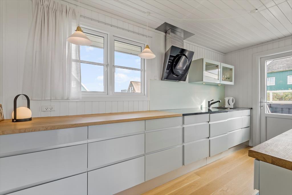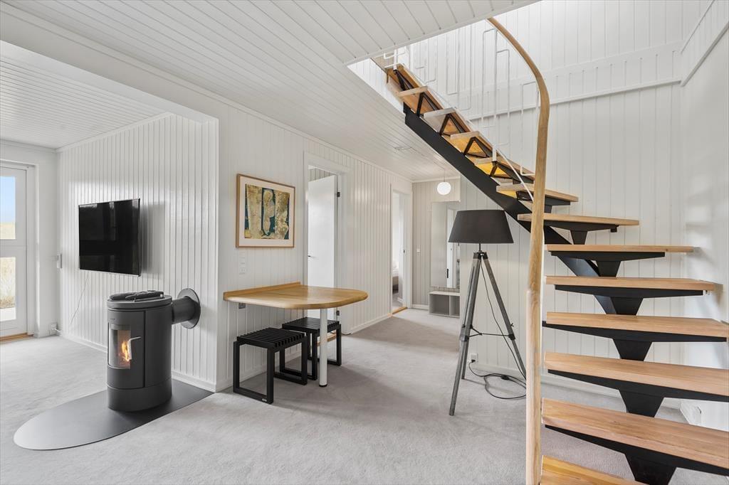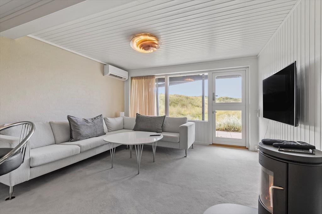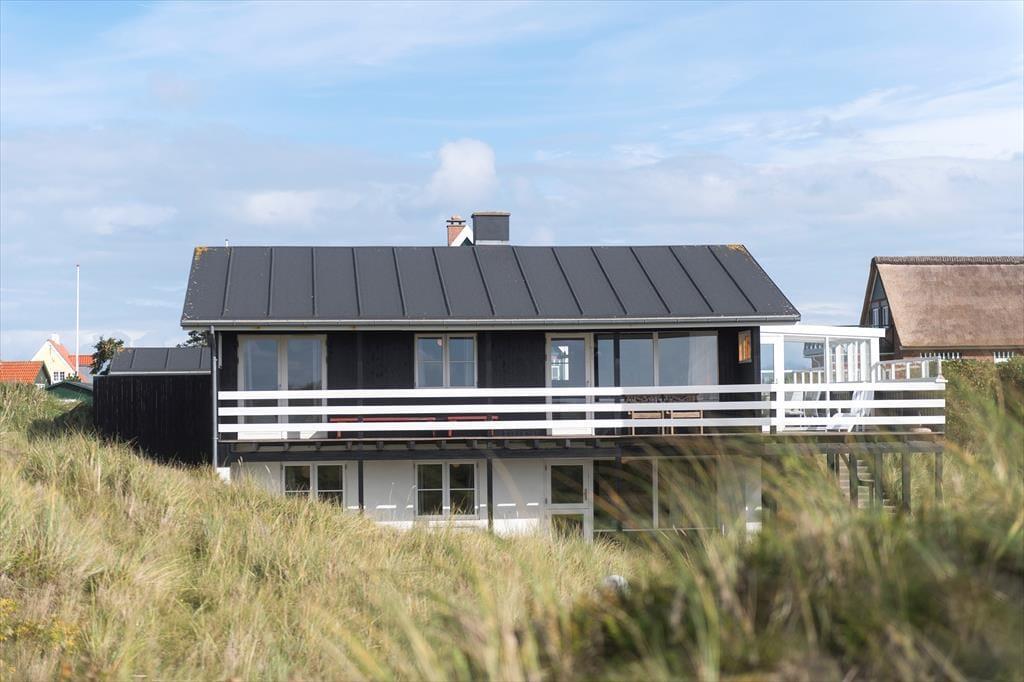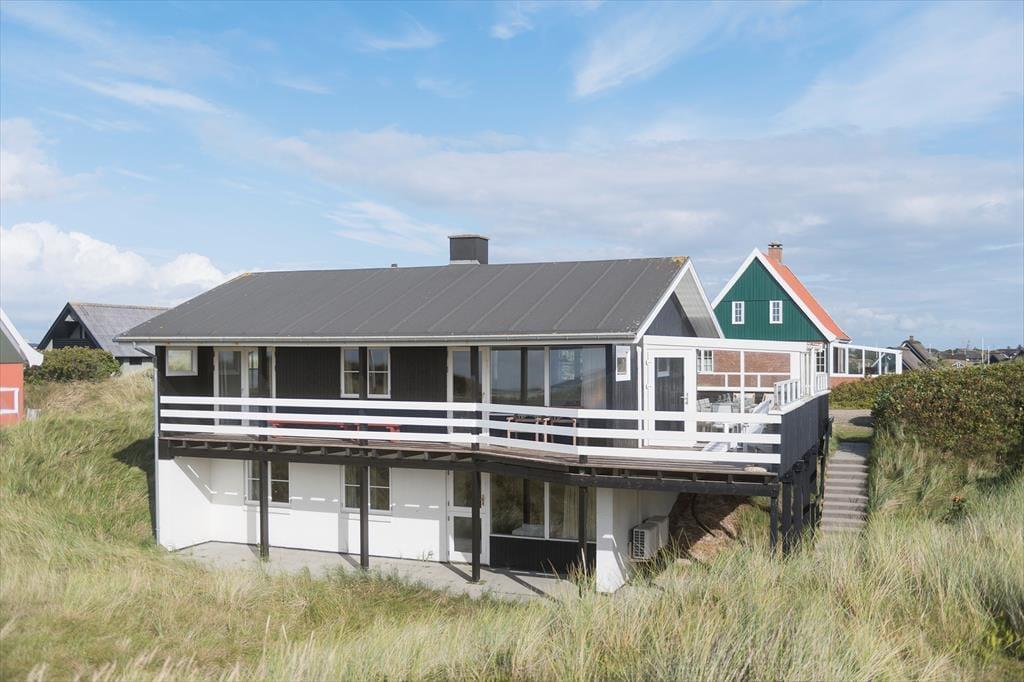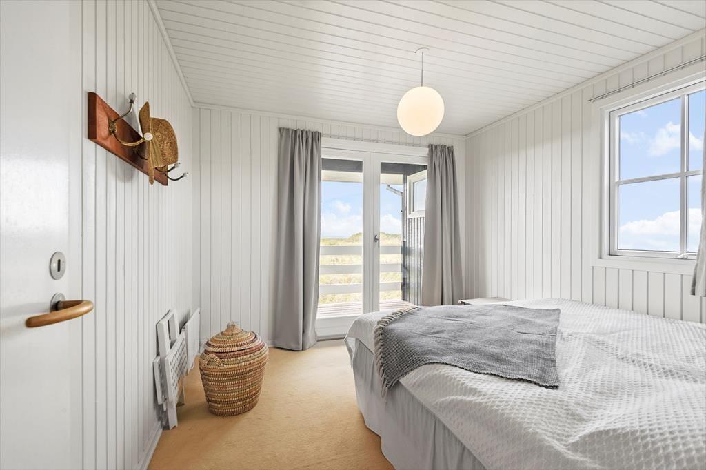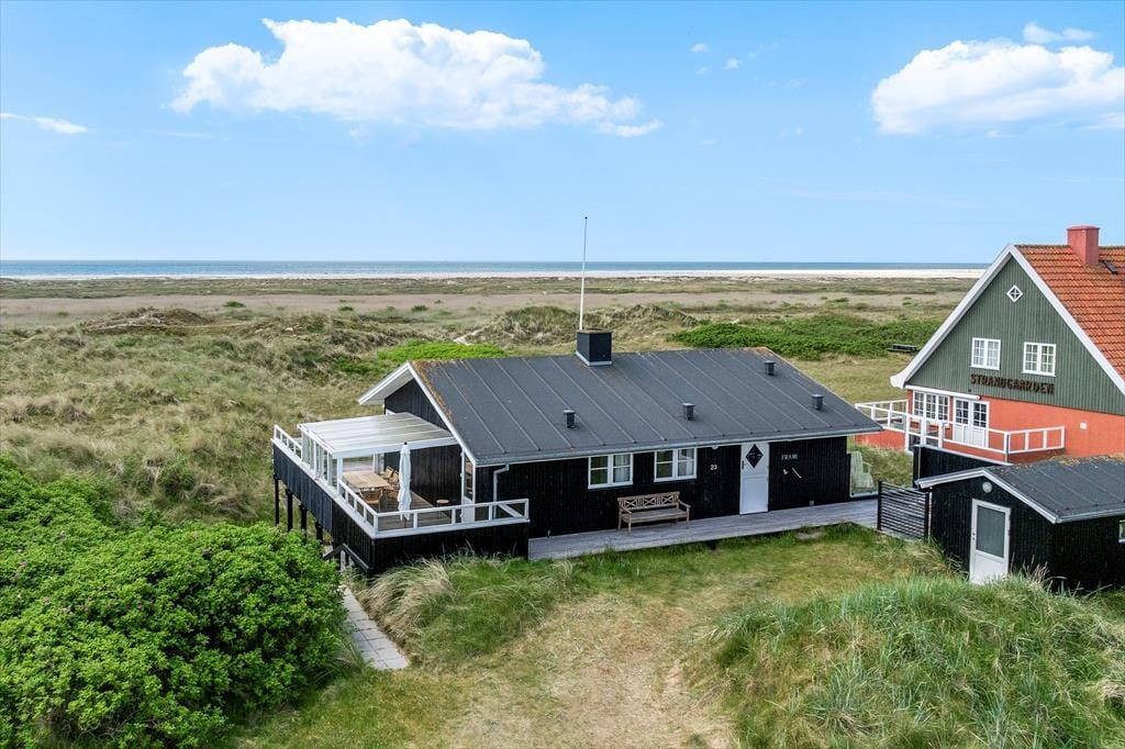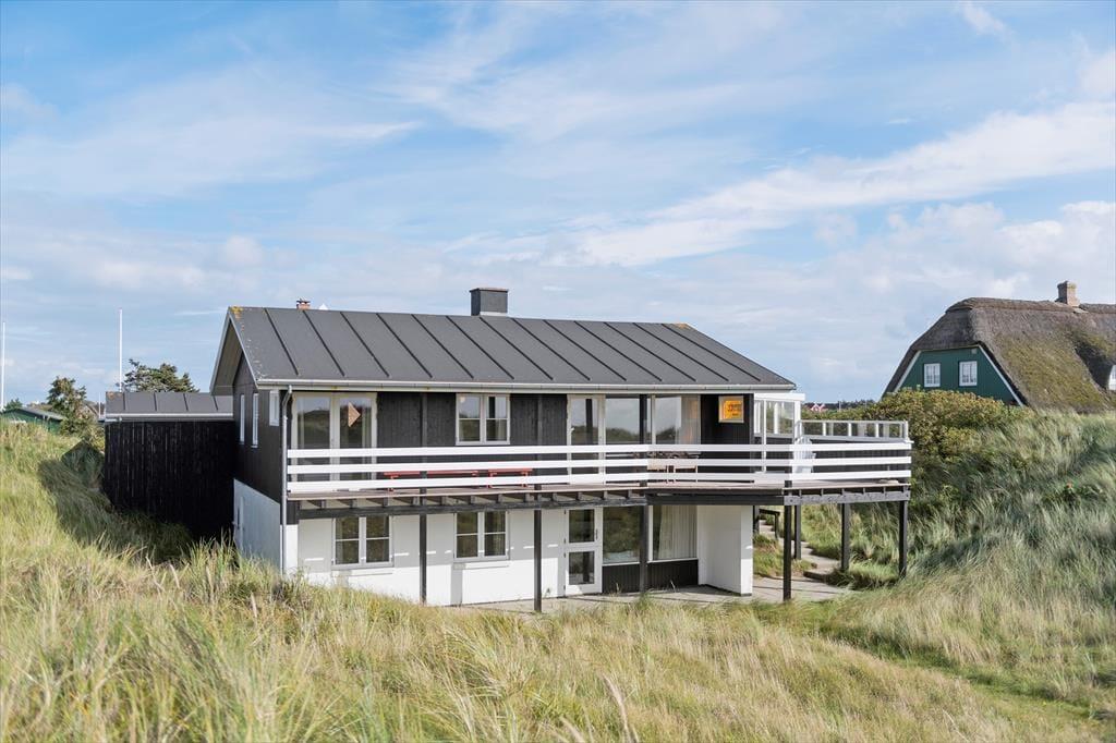 Von der Straße aus könnte das Ferienhaus wie ein klassisches Holzferienhaus für eine kleine Familie aussehen. Doch beim Betreten wirst du überrascht sein, dass es zwei Etagen gibt, da das Haus in die Dünen gebaut ist. Mit insgesamt 148 m² Innenfläche und laufenden Modernisierungsprojekten ist alles gepflegt und einladend. Im Erdgeschoss könnt ihr die gemeinsamen gemütlichen Stunden im großen Wohn- und Küchenbereich verbringen. Hier habt ihr Ausblick auf Meer und Dünen und könnt durch die Tür zur Veranda frische Luft schnappen. Eines der beiden Schlafzimmer auf dieser Etage bietet Meerblick und direkten Zugang nach draußen, während zwei weitere Schlafzimmer im Untergeschoss liegen – perfekt für verschiedene Aufteilungsmöglichkeiten zur Schlafenszeit. Es gibt zwei Badezimmer, und das im Untergeschoss ist mit einer herrlichen Sauna ausgestattet. Zudem gibt es ein Wohnzimmer im unteren Stockwerk, wo ihr euch in der Nähe des knisternden Holzofens vollkommen entspannen könnt.