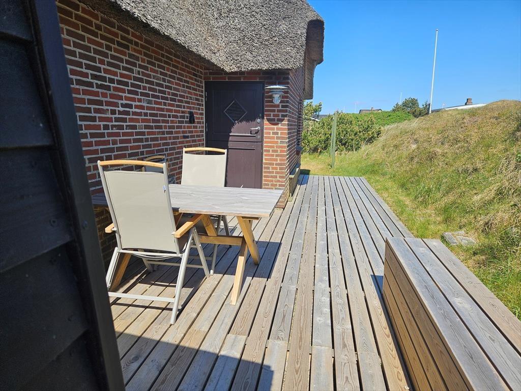 Wenn du auf die Terrasse trittst, merkst du schnell, dass dies ein Ort ist, an dem das Ferienleben wirklich gelebt werden kann. Die große, geschlossene Terrasse ist von duftenden Hagebuttenrosen umgeben, die sowohl Schutz vor Wind bieten als auch eine besonders ruhige Stimmung erzeugen. Hier kannst du mit deinem Morgenkaffee in der Sonne Platz nehmen, die Familie zum Grillabend versammeln oder einfach dem Vogelgesang lauschen, während Hunde und Kinder sicher innerhalb der Terrassenbegrenzung spielen. Die Atmosphäre ist entspannt und einladend, und die Terrasse lädt zu langen Sommertagen unter freiem Himmel und zu gemütlichen Abenden ein, wenn die Sonne langsam hinter den Dünen versinkt.