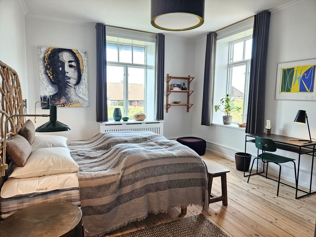 SONNENUNTERGANG liegt am Kystvejen, wo das Licht vom Meer seinen Weg zwischen den Dünen hindurch in deine Ferienwohnung findet. Hier bist du Fanø Bads Küste am nächsten, und jeden Abend kannst du das Farbenspiel der Sonne über dem Horizont genießen. Die Wohnung kombiniert klassische Details mit modernem Komfort, sodass du in stimmungsvoller Umgebung entspannen kannst.