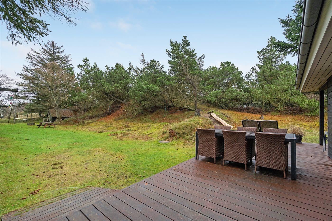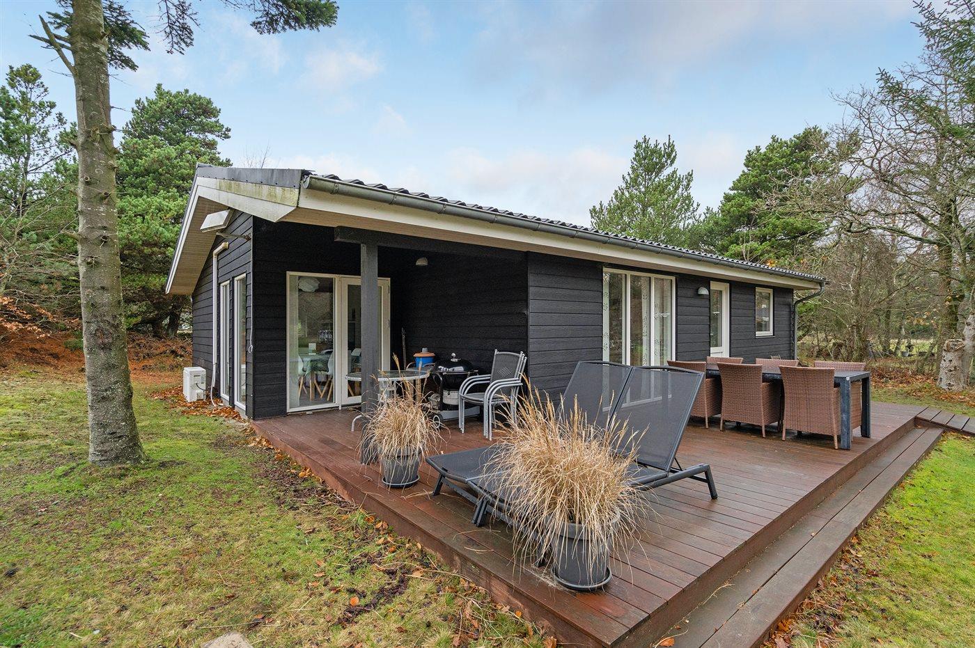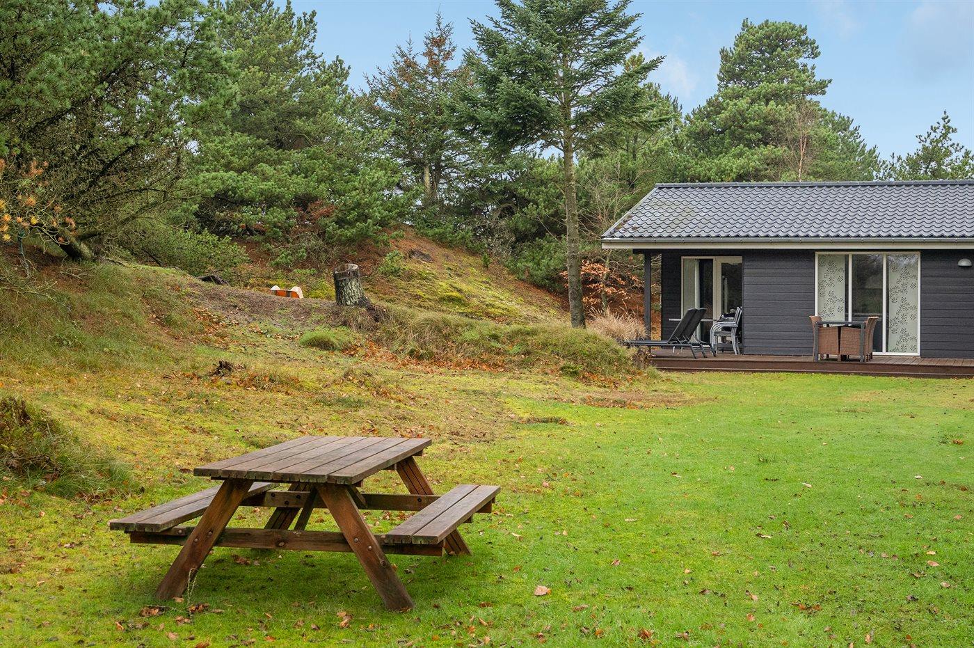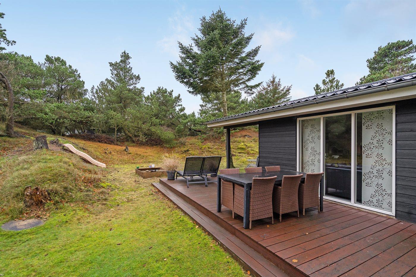 Mit kurzem Abstand zu allem liegt dieses schöne Ferienhaus auf einem ganz besonders schönen Grundstück, das von Bäumen und Dünen umgeben ist. Hier gibt es alle Vorraussetzungen um den Urlaub ungestört genießen zu können – sowohl im Haus als auch auf den Terrassen und dem Grundstück. Das Haus ist gut ausgestattet und vom Wohnzimmer haben Sie direkten Zugang zu den Terrassen, auf denen Sie es sich mit einem guten Buch gemütlich machen können, während die Kinder auf dem Grundstück spielen. Das Haus ist gut gedämmt und mit der energiebesparenden Wärmepumpe auch für kühle Tage geeignet. Ein schönes Haus auf einem ganz besonders schönen, Grundstück in einem Gebiet mit einem reichen Tierleben.