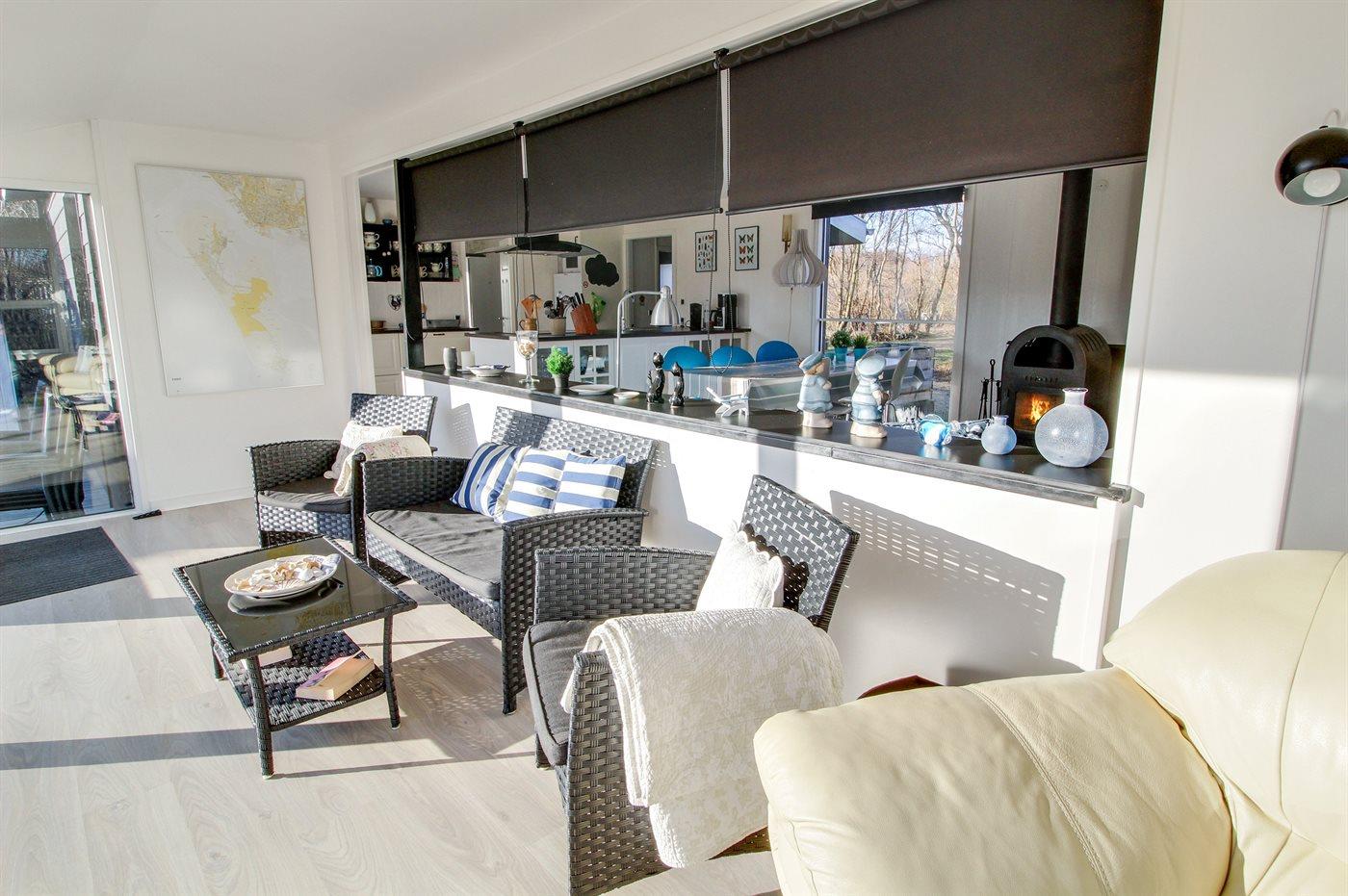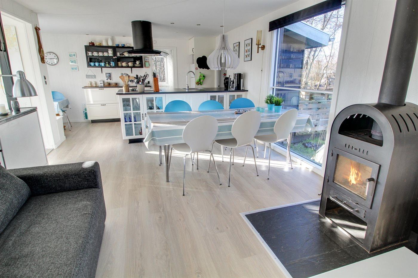 Hier können wir Ihnen ein schönes und teilweise renoviertes Ferienhaus, in ruhiger und naturschöner Umgebung, anbieten. Die moderne und Küche ist mit dem nett möblierten Wohnzimmer kombiniert.