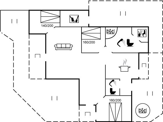 Das Ferienhaus eignet sich für 8 Personen sowie 1 Kleinkind bis zu 3 Jahren. 2 der Schlafplätze eignen sich jedoch nur für größere Kinder (4-11 Jahre). Die Ferienunterkunft hat eine Wohnfläche von 102 m² und wurde 2012 gebaut. Haustiere dürfen nicht mitgebracht werden. Die Ferienunterkunft ist mit energiesparender Wärmepumpe ausgestattet. Die Ferienunterkunft ist mit Waschmaschine ausgestattet. Wäschetrockner. Tiefkühlmöglichkeit mit 76 Liter Nutzinhalt. Es gibt außerdem einen Kaminofen. Für die jüngsten Feriengäste ist 1 Kinderhochstuhl vorhanden.