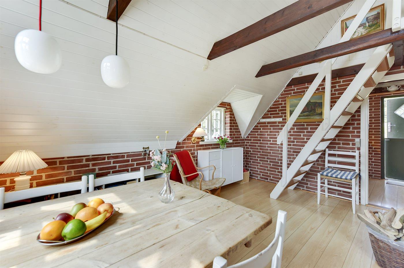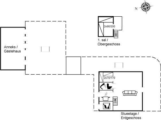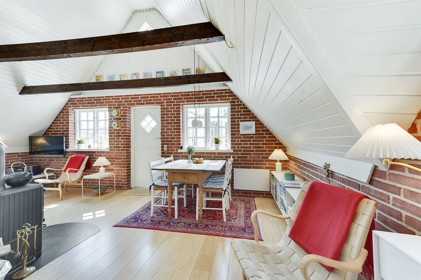 Das Ferienhaus eignet sich für 4 Personen sowie 1 Kleinkind bis zu 3 Jahren. 2 der Schlafplätze eignen sich jedoch nur für größere Kinder (4-11 Jahre). Die Ferienunterkunft hat eine Wohnfläche von 54 m², ist 2-stöckig, und wurde 1980 gebaut. 2021 wurde die Ferienunterkunft teilweise renoviert. Haustiere dürfen nicht mitgebracht werden. Die Ferienunterkunft ist mit energiesparender Wärmepumpe ausgestattet. Die Ferienunterkunft ist mit Waschmaschine ausgestattet. Tiefkühlmöglichkeit mit 30 Liter Nutzinhalt. Es gibt außerdem einen Kaminofen.Es gibt außerdem einen Kamin. Für die jüngsten Feriengäste ist 1 Kinderhochstuhl vorhanden.