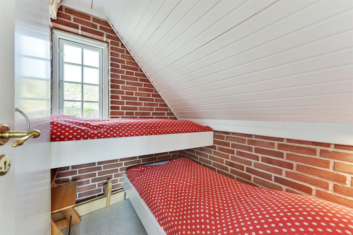 Die Schlafplätze verteilen sich auf 2 Schlafräume. 2 Schlafplätze in Einzelbetten. 2 Schlafplätze in einem Etagenbett. Ferner steht ein Kinderbett zur Verfügung.