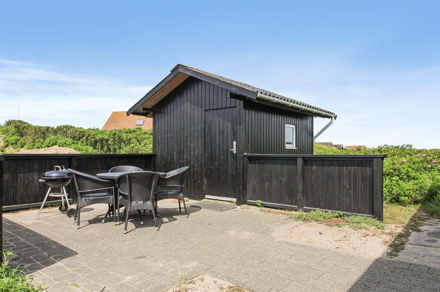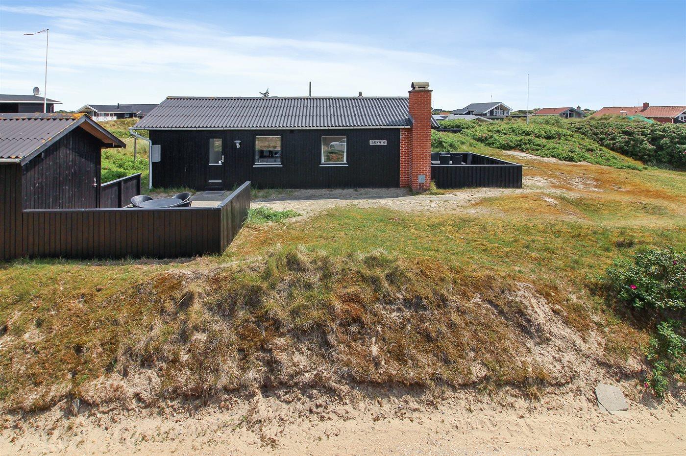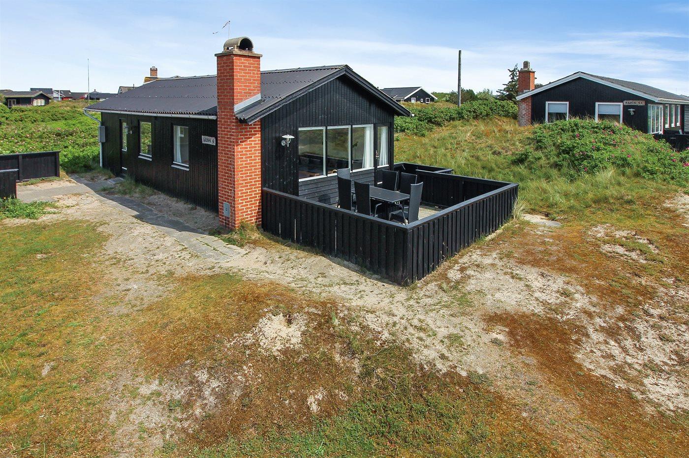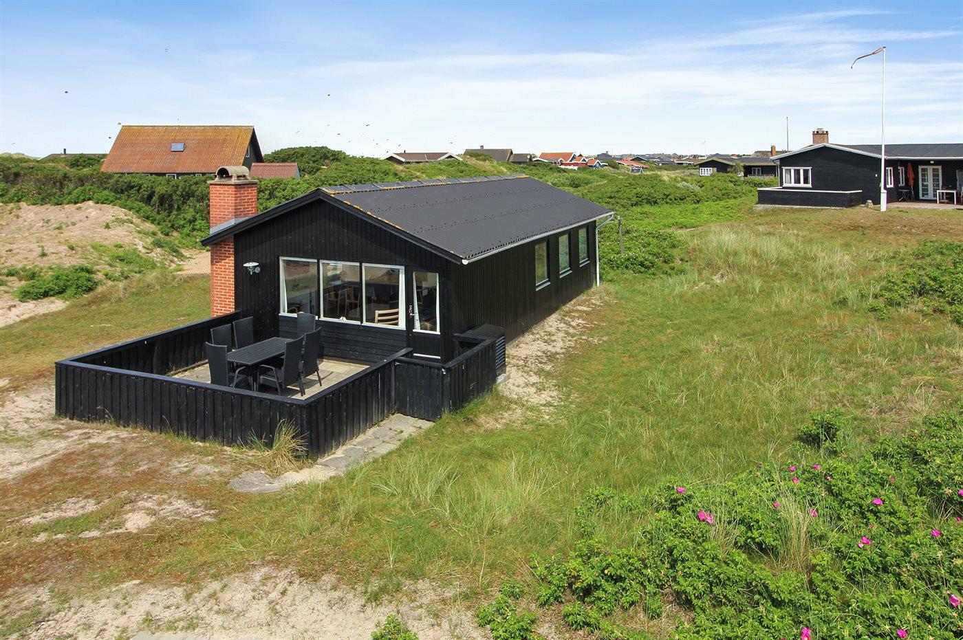 Die Ferienunterkunft liegt auf einem 998 m² großen Dünengrundstück. Die Entfernung zum Meer beträgt 200 m. Die nächste Einkaufsmöglichkeit liegt 700 m entfernt. Es steht ein 36 m² Terrassenareal zur Verfügung. Davon insgesamt 20 m² geschlossene Terrasse. Geräteraum.