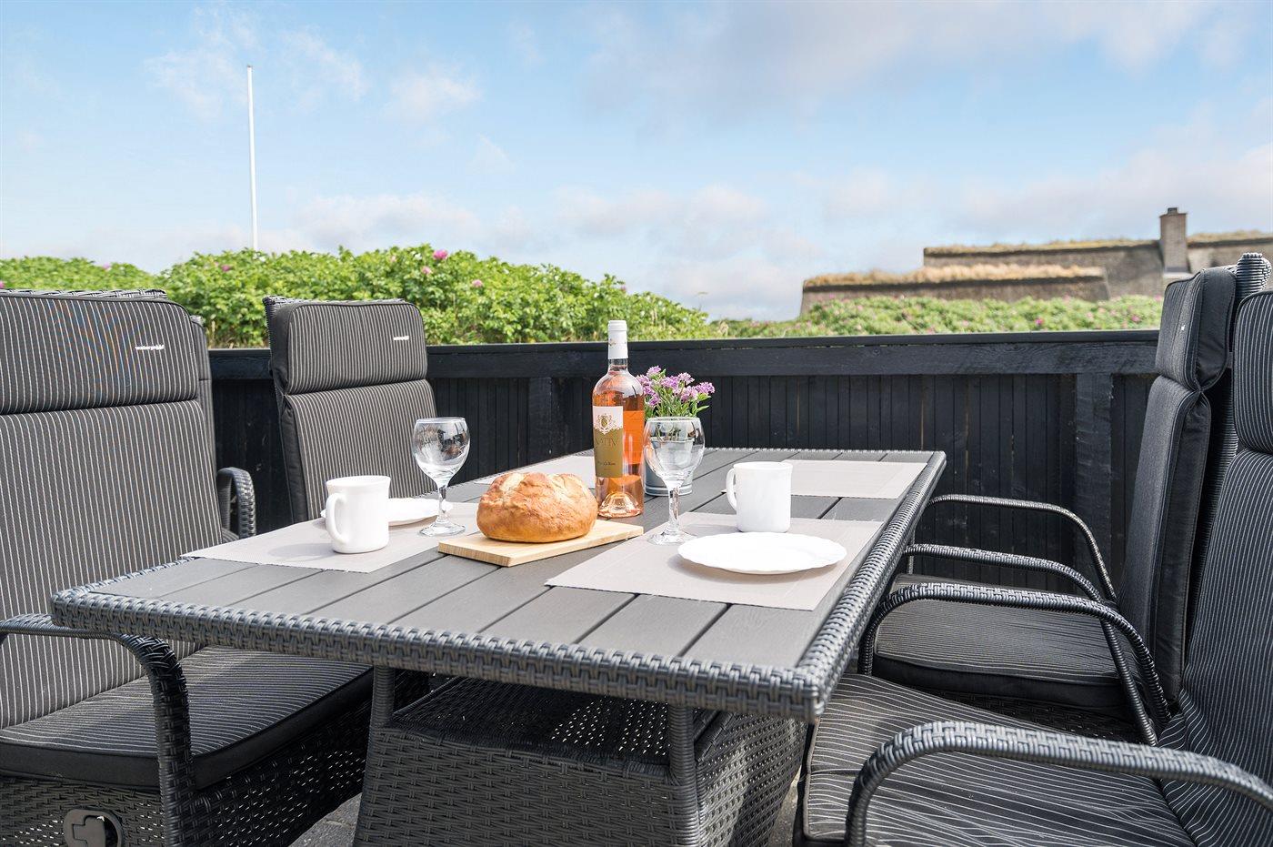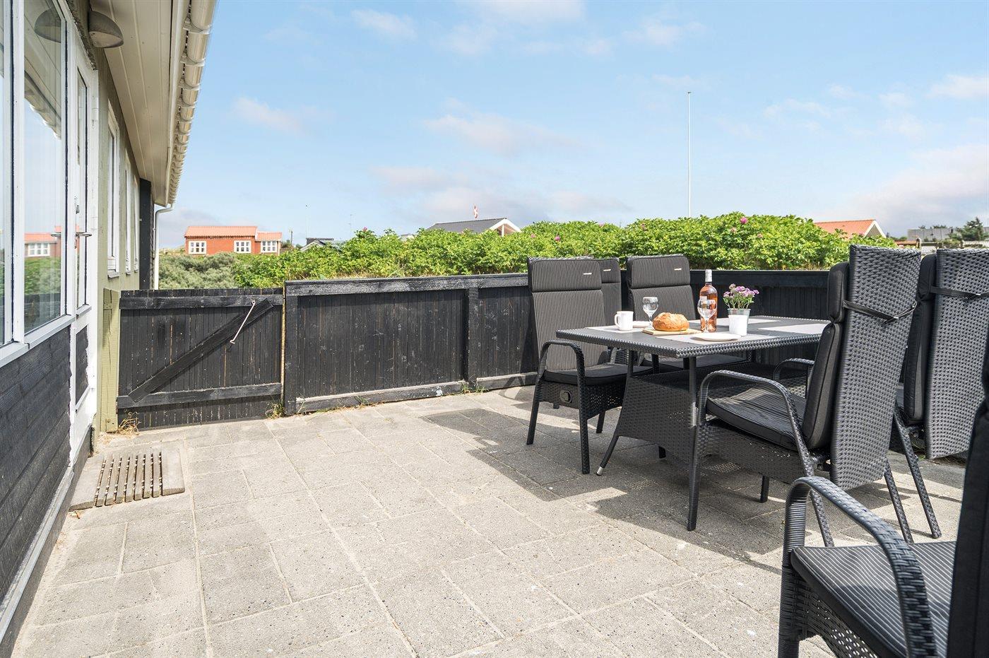 Gemütliches und gut ausgestattetes Ferienhaus auf Dünengrundstück dicht am Strand. Schöne, geschlossene Terrasse gegen Südwesten.