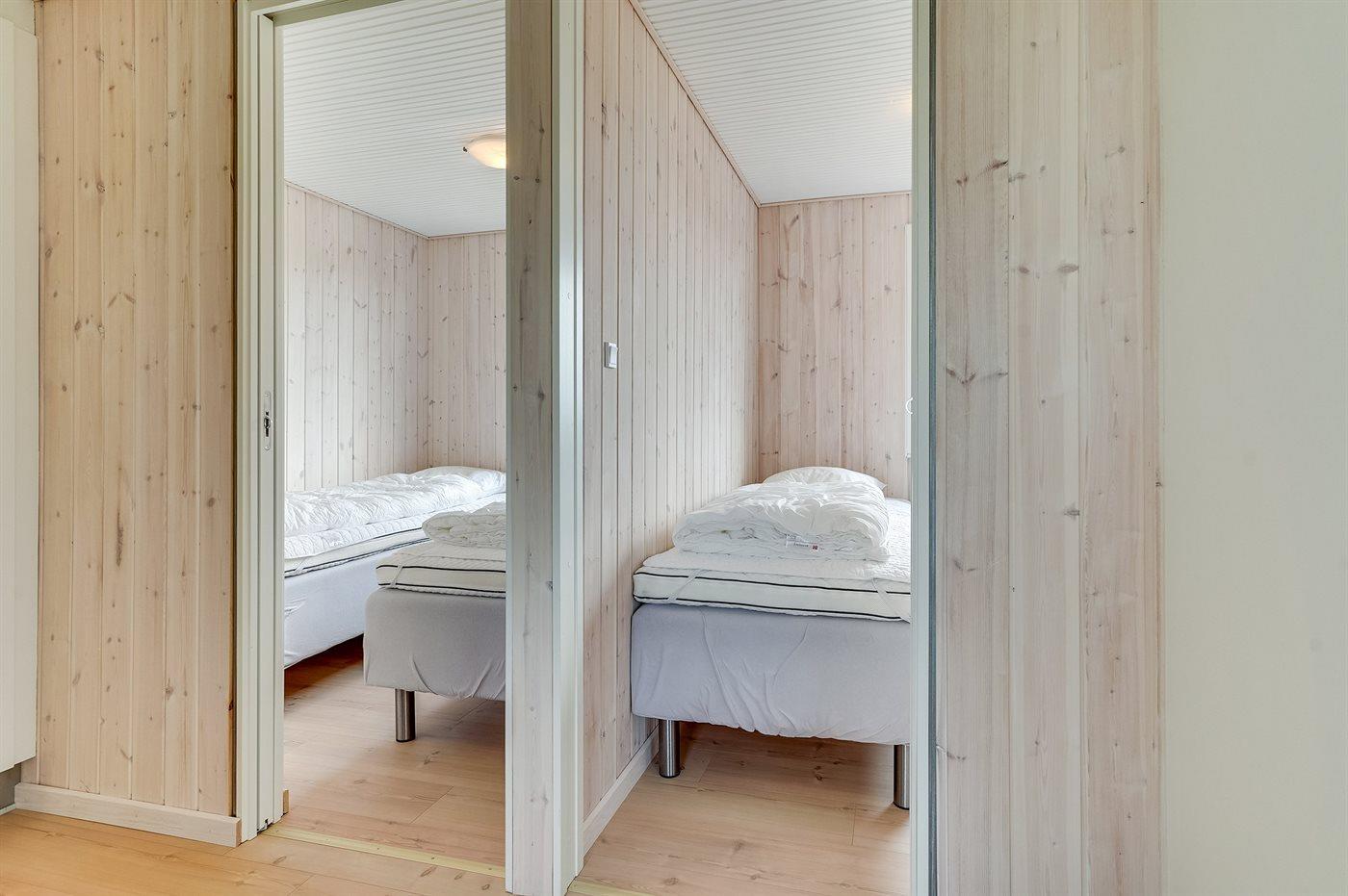 Die Schlafplätze verteilen sich auf 3 Schlafräume. 2 Schlafplätze in einem Doppelbett. 4 Schlafplätze in Einzelbetten. Ferner steht ein Kinderbett zur Verfügung.
