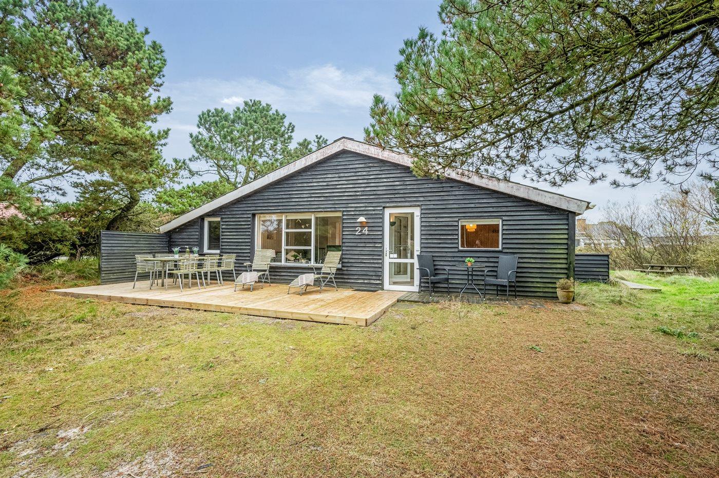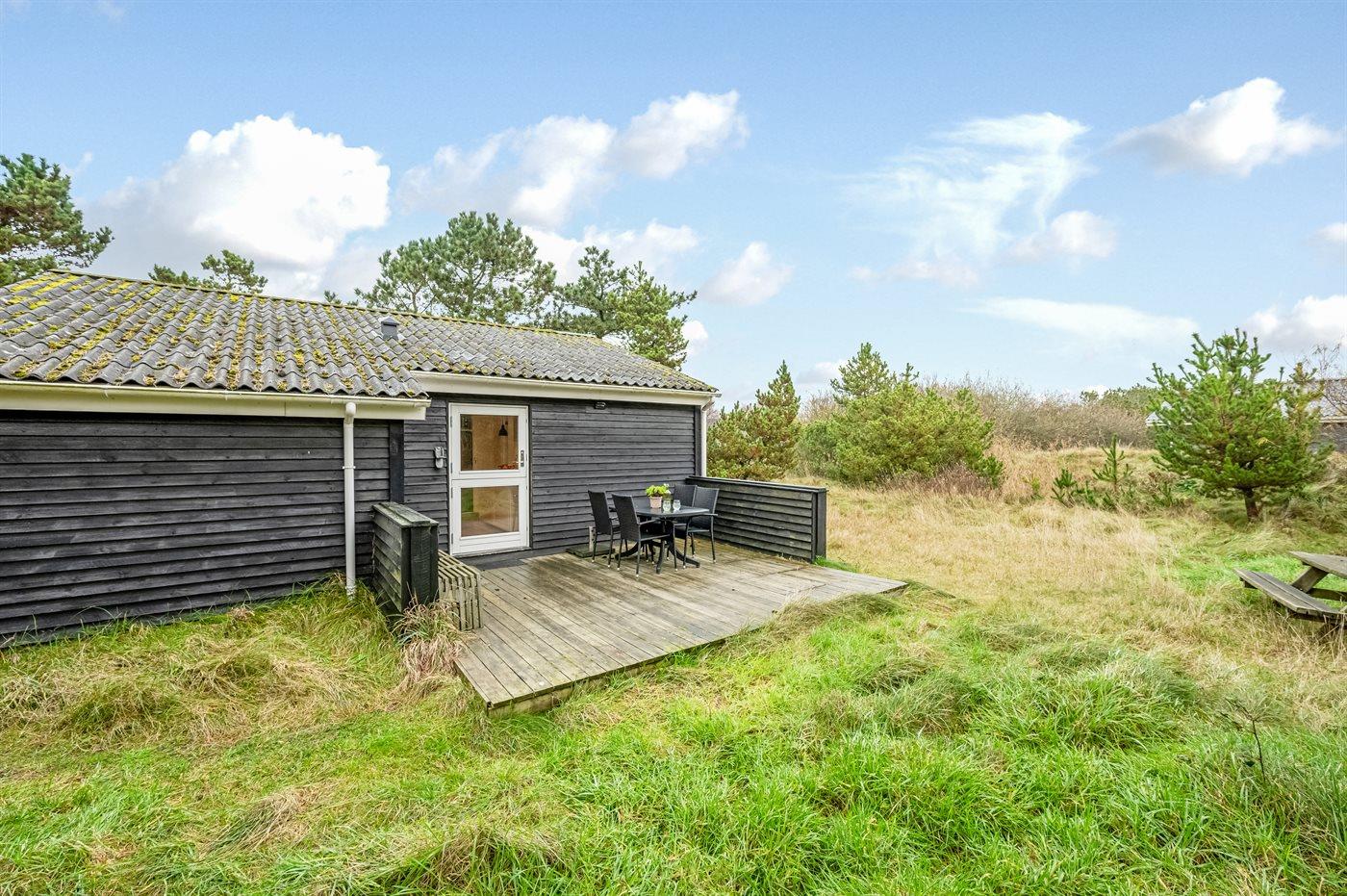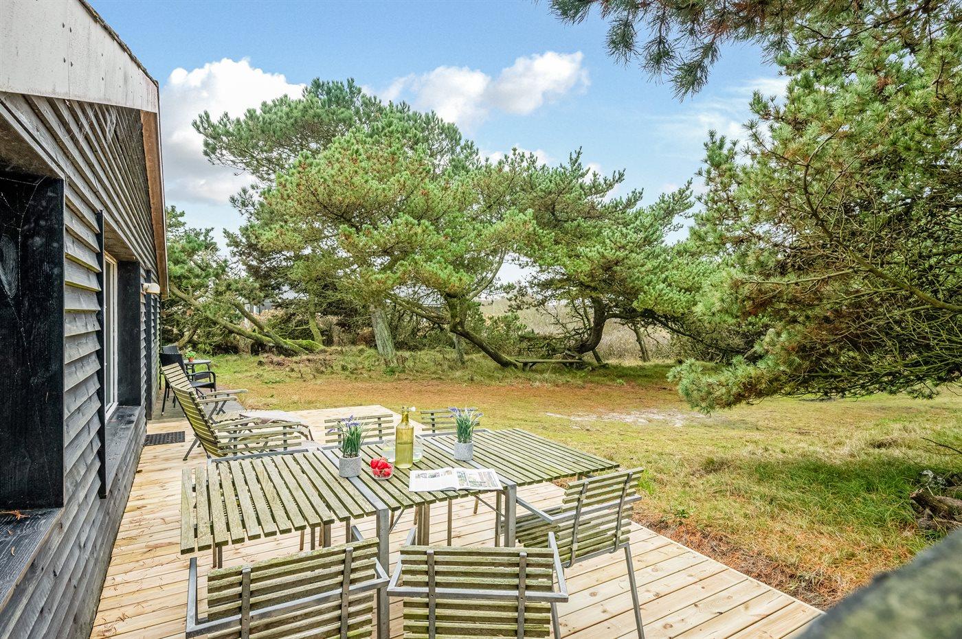 Ein gemütliches und gut eingerichtetes Ferienhaus. Auf einem ruhigen Dünengrundstück mit Bepflanzung am Ende einer Sackgasse und unweit vom Strand gelegen. Auf dem Grundstück gibt es viel Platz zum Spielen oder auf den schönen Terrassen sitzen und Rehe und Fasane hautnah erleben.