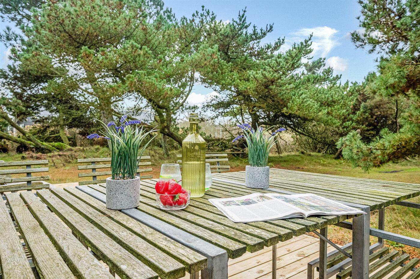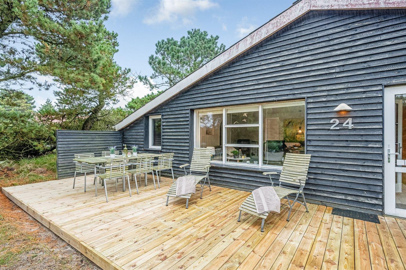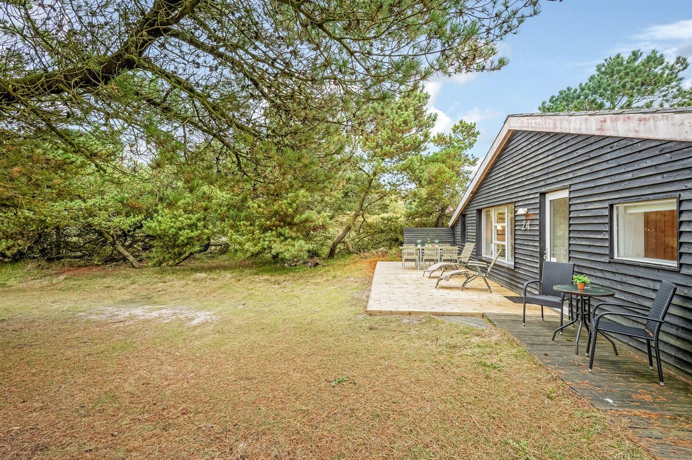 Ein gemütliches und gut eingerichtetes Ferienhaus. Auf einem ruhigen Dünengrundstück mit Bepflanzung am Ende einer Sackgasse und unweit vom Strand gelegen. Auf dem Grundstück gibt es viel Platz zum Spielen oder auf den schönen Terrassen sitzen und Rehe und Fasane hautnah erleben.