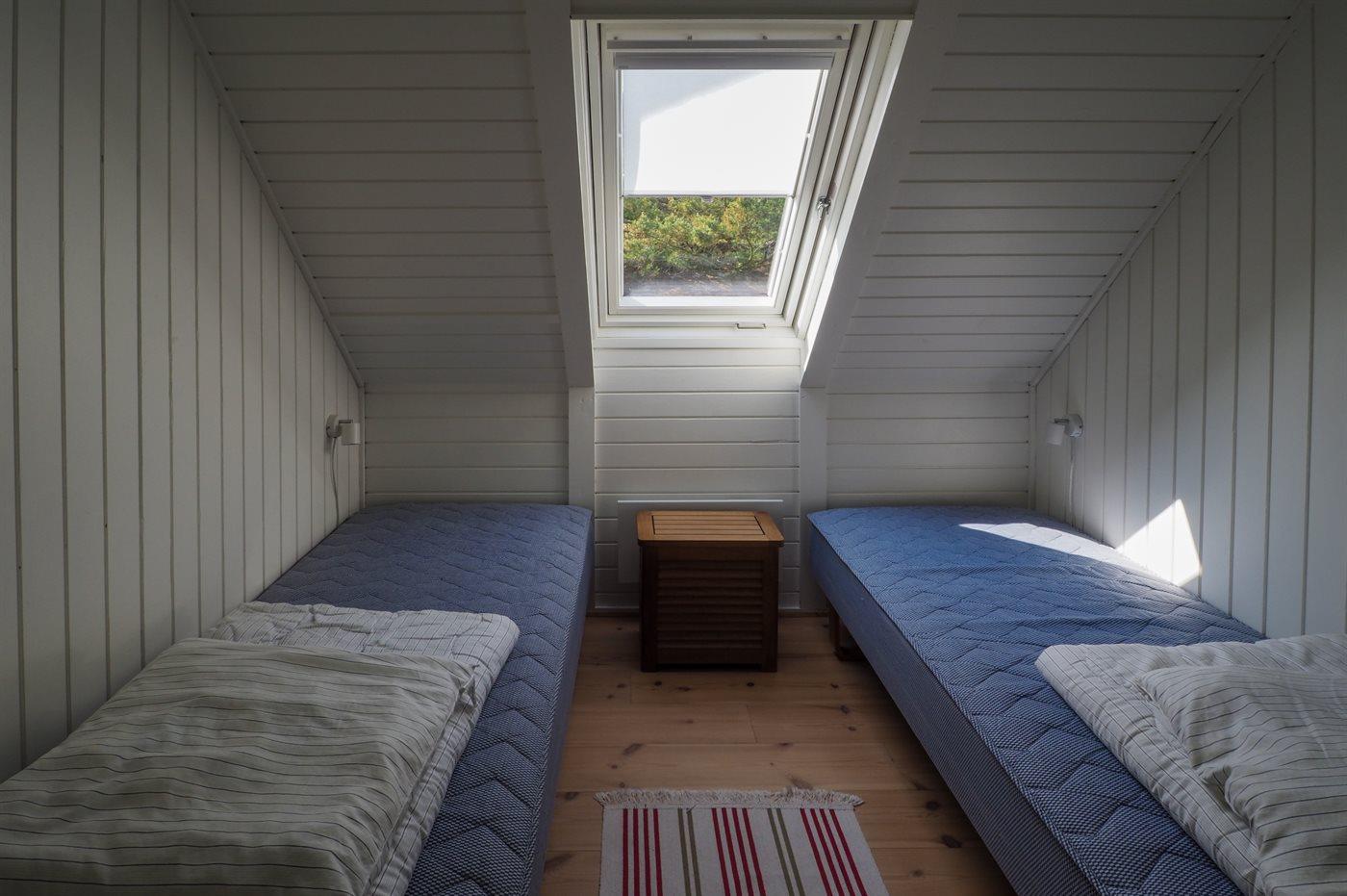 Die Schlafplätze verteilen sich auf 3 Schlafräume. 5 Schlafplätze in Einzelbetten. 2 von diesen Schlafplätzen befinden sich im offenen Obergeschoss.