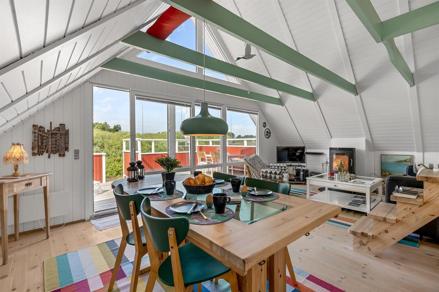 Schönes Ferienhaus mit netter und gemütlicher Möblierung. Im 1. Stock ist ein offenes Schlafzimmer. Haustiere sind erlaubt. Ruhige Lage auf Dünengrundstück. Schöne Terrasse vorhanden.