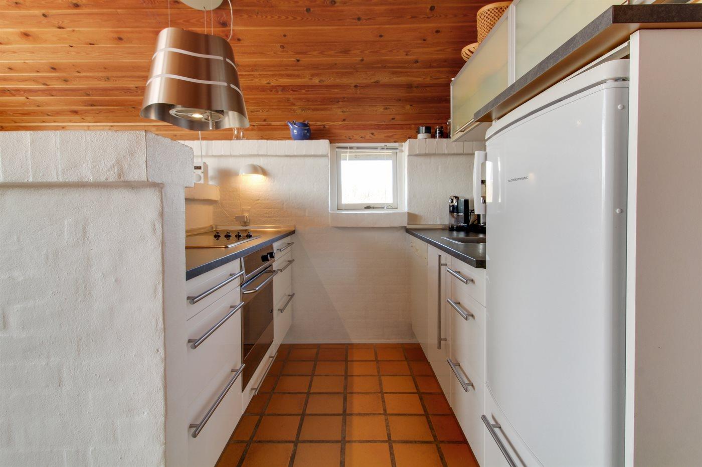 Die Küche ist mit Kühlschrank ausgestattet. Außerdem gibt es 4 Keramik-Kochfelder, Umluftofen sowie Geschirrspüler.
