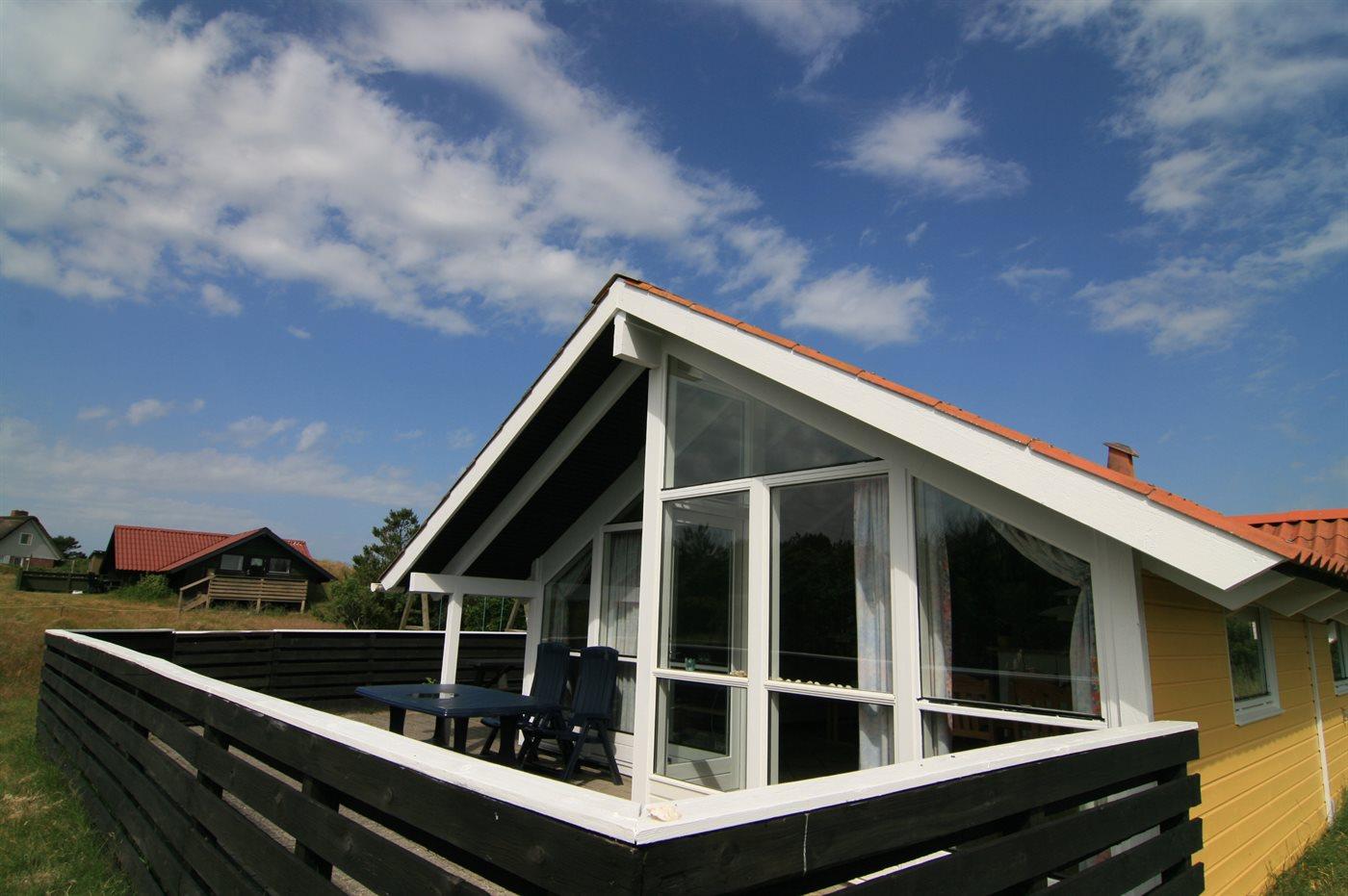 Im Naturgebiet und nicht weit vom Strand entfernt, befindet sich dieses Haus mit Platz für 6 Personen. Vom Haus kann man auf einem kleinen Weg zu Fuss zum Strand gehen. Badezimmer mit Whirlpool und Sauna. Grosse Fenster im Wohnzimmer. Die Terrasse ist ganz geschlossen und hier gibt es auch eine Sandkiste. Ausserdem Schaukel, Kinderbett und Kinderstuhl für die Kleinen. Das Haus verfügt über 300 L. Warmwasserboiler, was bedeutet, dass der Whirlpool mit warmem Wasser gefüllt werden kann.