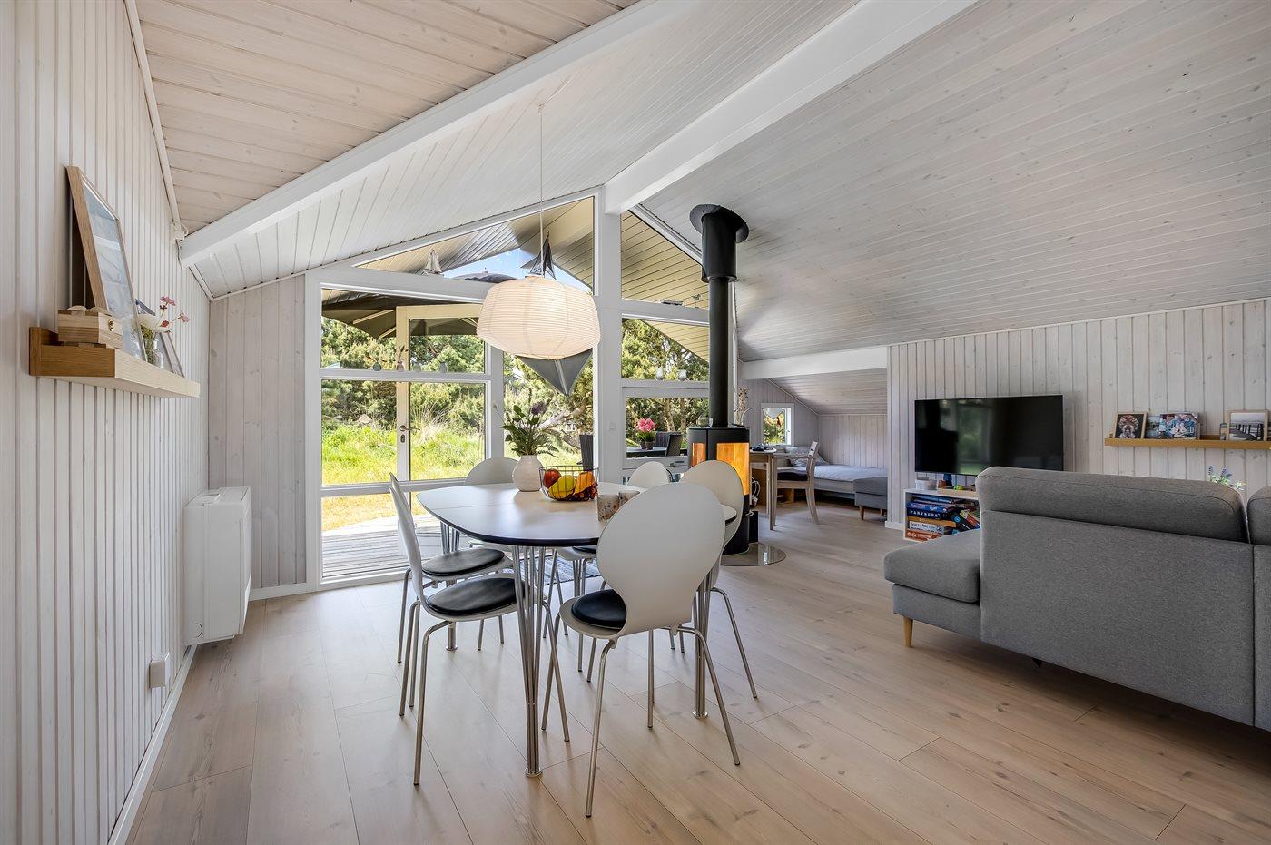 Schönes und gepflegtes Ferienhaus auf einem großen, schönen und ungestörten Grundstück am Rindby Strand. Das Haus, das schön hell und modern ist, liegt auf einem Naturgrundstück, umgeben von hohen Kiefern in einer ruhigen Gegend.