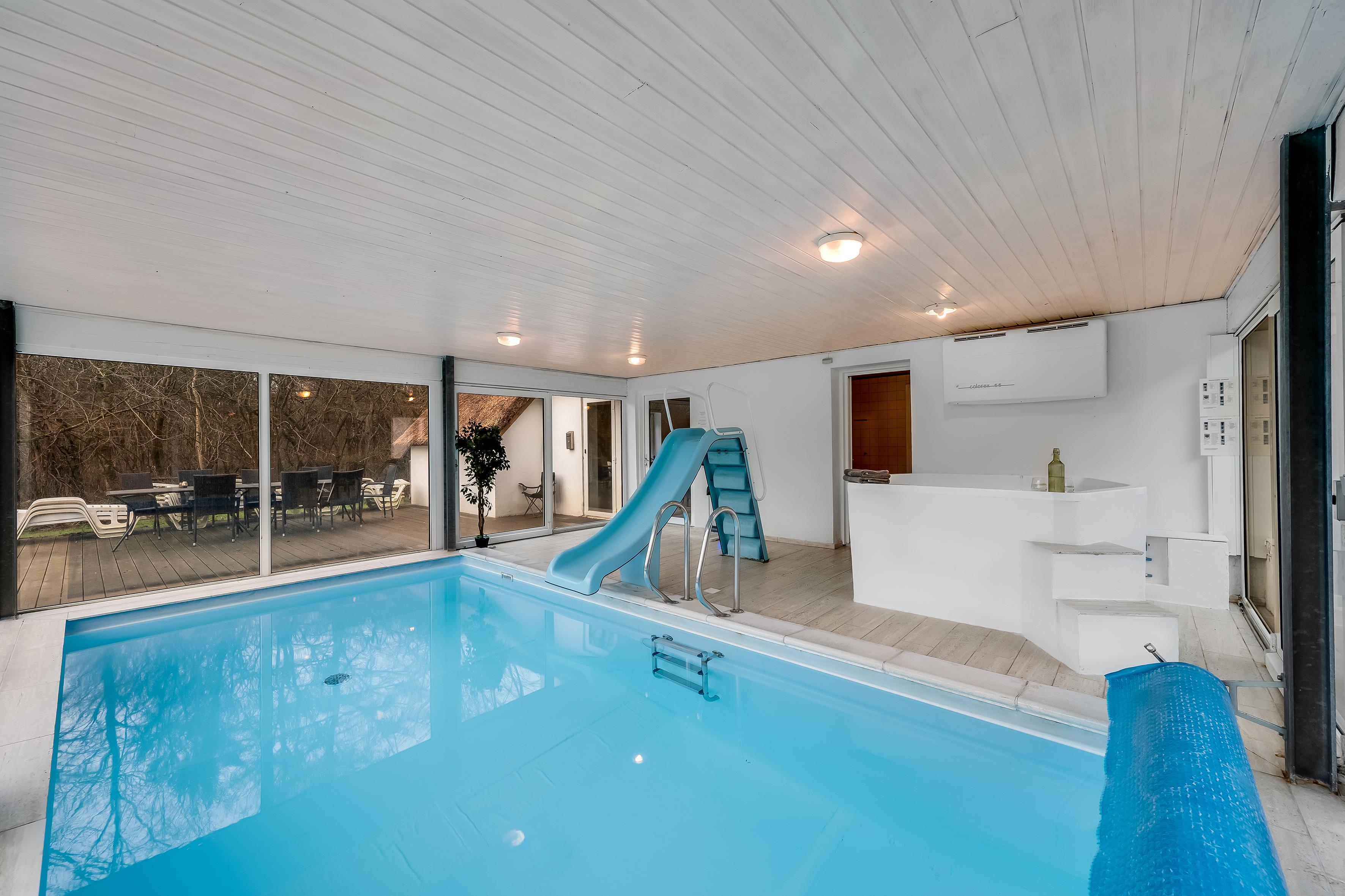Draußen können Sie eine große Terrasse genießen, auf der Sie sich entspannen und die Sonne genießen können. Ihnen steht auch ein Grill zur Verfügung, perfekt für Sommerpartys und Mahlzeiten im Freien. Kinder werden den Spielplatz mit Schaukeln und Sandkasten lieben, während Erwachsene am Pool entspannen können, der auch über ein Schwimmbecken verfügt. hat eine Wasserrutsche für zusätzlichen Spaß. Wer sich verwöhnen lassen möchte, kann sich im Innen-Spa mit Platz für bis zu sieben Personen entspannen und nach einem langen Tag in der Sauna entspannen.