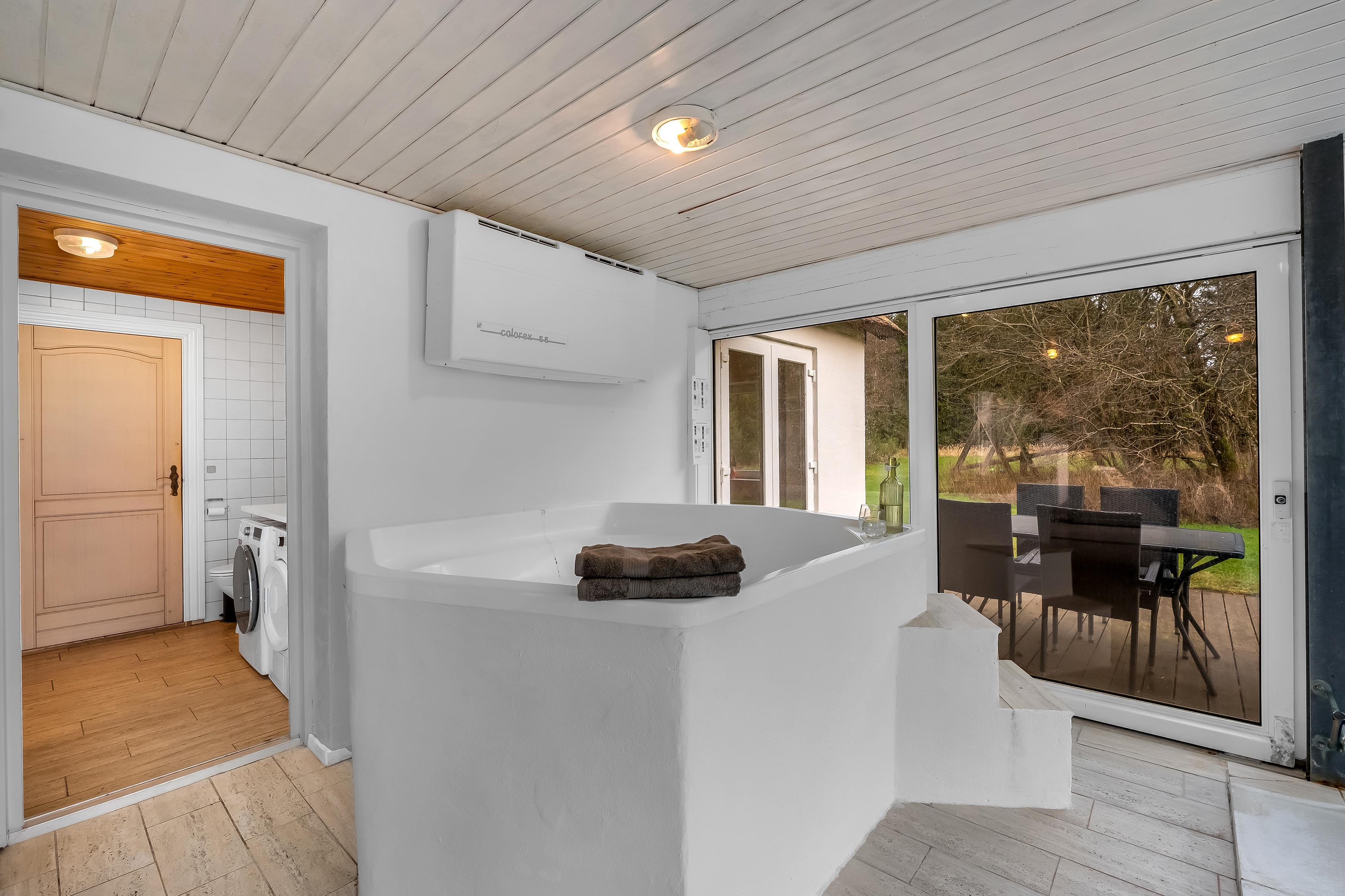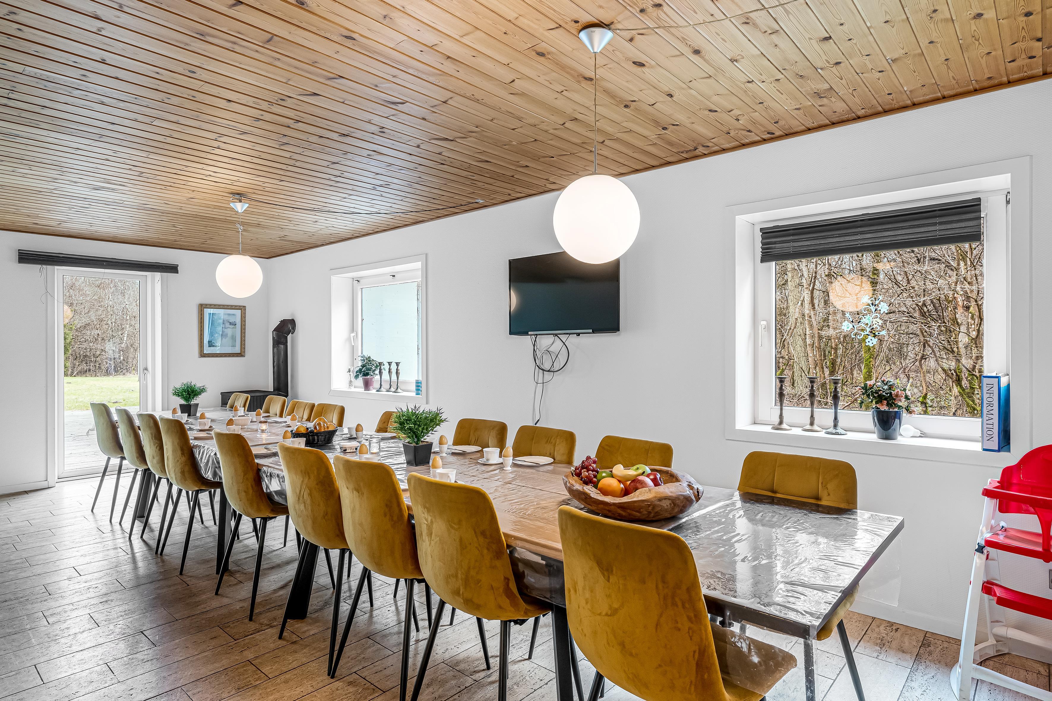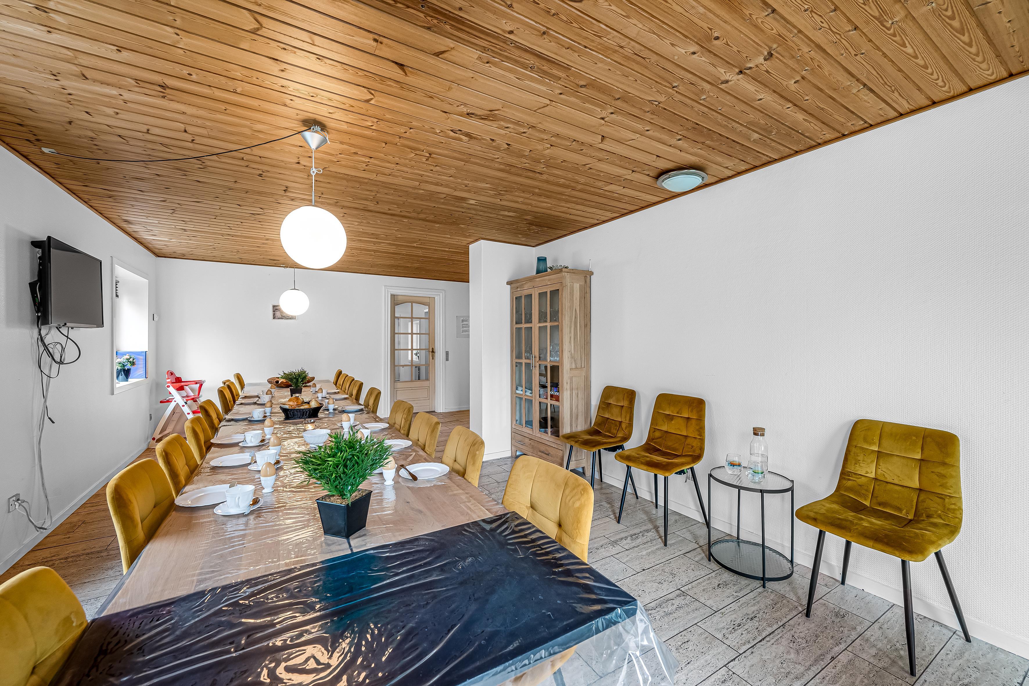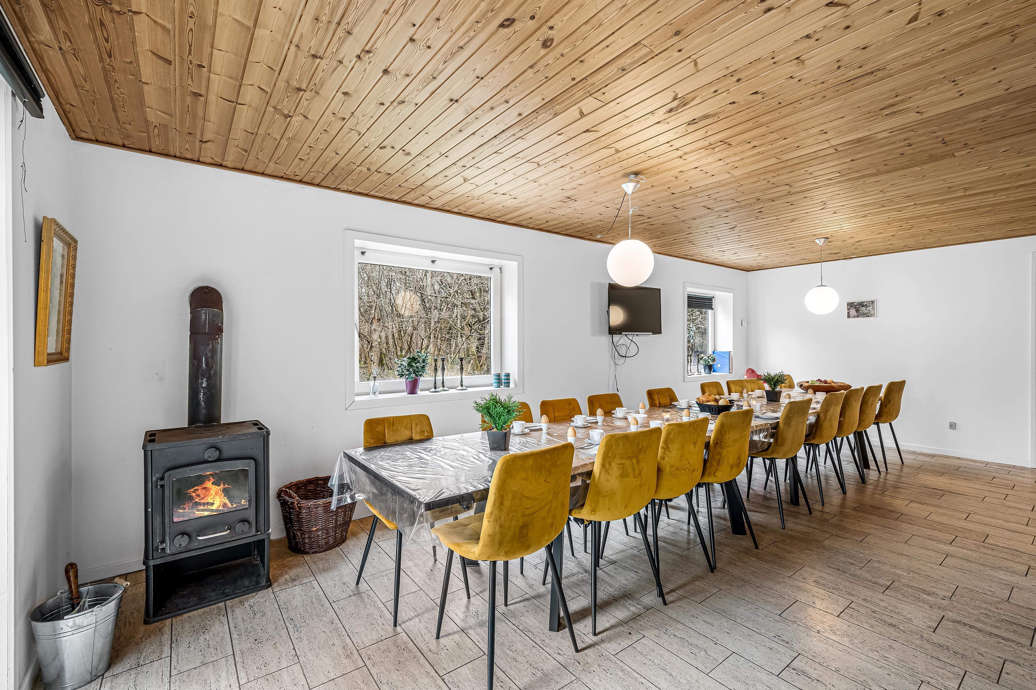 Für diejenigen, die gerne kochen, ist die Küche mit modernen Geräten ausgestattet, darunter eine Mikrowelle, ein Backofen, ein Cerankochfeld, eine Spülmaschine, ein Kühlschrank und ein Gefrierschrank mit einem Fassungsvermögen von 80 Litern. So ist es möglich, köstliche Mahlzeiten für die ganze Gruppe zuzubereiten. Es gibt auch einen Holzofen und eine Wärmepumpe, die rundum für eine angenehme Temperatur sorgt.