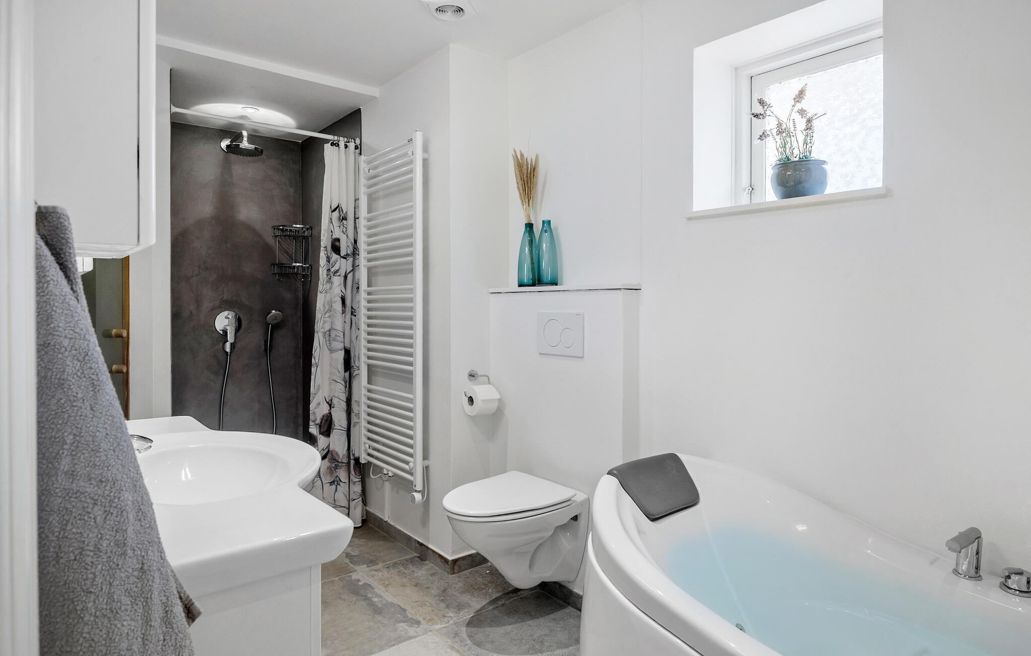 Badezimmer (nr. 3) - WC. Warmes und kaltes Wasser. Dusche und Badewanne