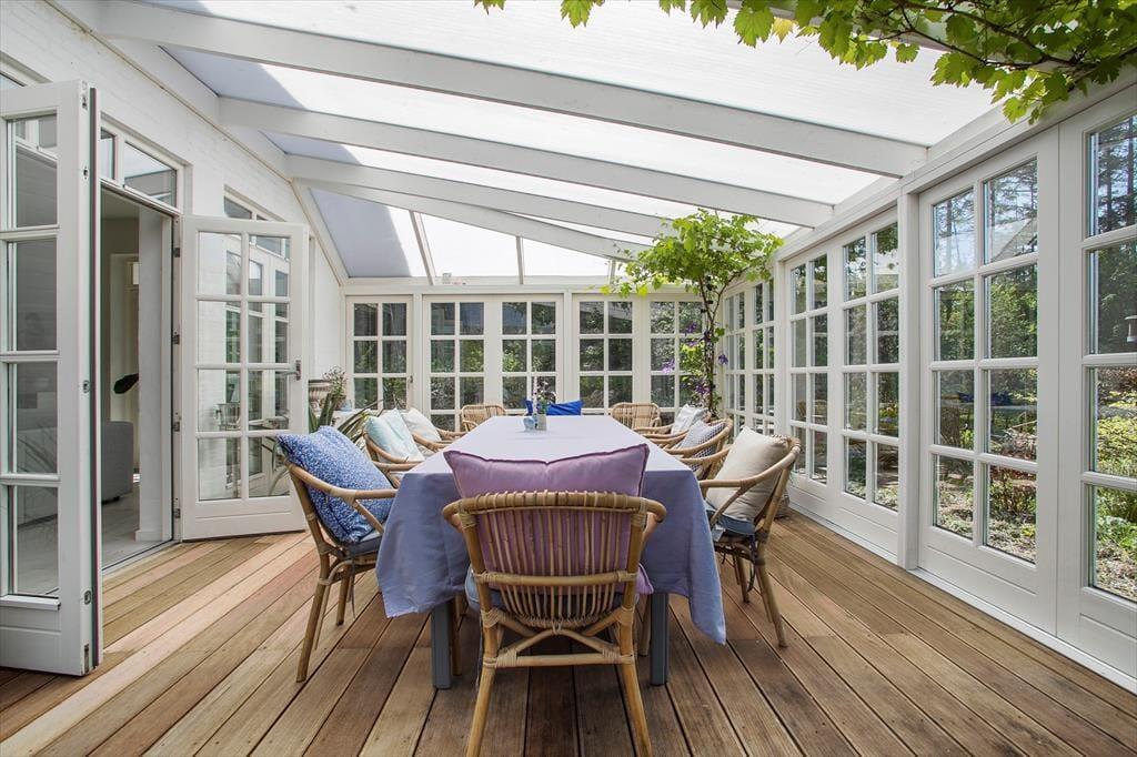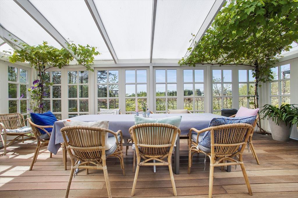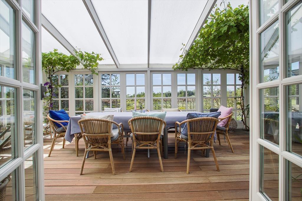Mit seinem Reetdach und der weißen Fassade erinnert dieses Urlaubsdomizil an ein klassisches Anwesen auf dem Lande. Es handelt sich allerdings um ein neueres Bauwerk aus dem Jahr 2007, das mit einer Wohnfläche von 350 m² aufwartet. Die Wohnfläche erstreckt sich über das Erdgeschoss und das erste Stockwerk. Im Inneren erwartet Sie einen helle, luftige Wohnatmosphäre. Wie die Bilder erkennen lassen, sind Materialien und Möbel sorgfältig und hochklassig ausgesucht. Die fünf Schlafzimmer verteilen sich auf drei Schlafbereiche - zwei im Erdgeschoss und einer im Obergeschoss. Jeder Schlafbereich verfügt über ein eigenes Badezimmer, eines davon mit einer elegant in den Boden eingelassenen Badewanne. Ergänzt werden die Schlafräume durch ein doppeltes Schlafsofa ein im Aktivitätsraum, der darüber hinaus mit Billardtisch, Tischkicker und elektronischer Dartscheibe ausgestattet ist. Falls Sie sich die Zeit nicht gerade im Aktivitätsraum vertreiben, laden zwei Wohnräume und ein beeindruckender Küchen- und Essbereich zu geselligen und erholsamen Stunden ein - außerdem der nach Westen gerichtete Wintergarten, der zu idyllischen Essen und zu gemütlichen Stunden unter den kletternden Weinreben einlädt.