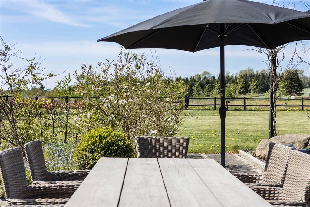 Der Wintergarten wird im Nu zu Ihrem bevorzugten Aufenthaltsplatz avancieren. Bei schönem Sommerwetter ist es allerdings mindestens genauso schön, Zeit unter freiem Himmel zu verbringen. Rund um das Haus erwarten Sie mehrere große, offene Terrassen. Das nach Westen ausgerichtete Terrassenareal gewährt einen Ausblick auf die grüne Landschaft. Für Ihre Kinder steht eine Nestschaukel bereit. Das riesige Grundstück überzeugt mit viel Platz für verschiedenste Outdoor-Spiele.