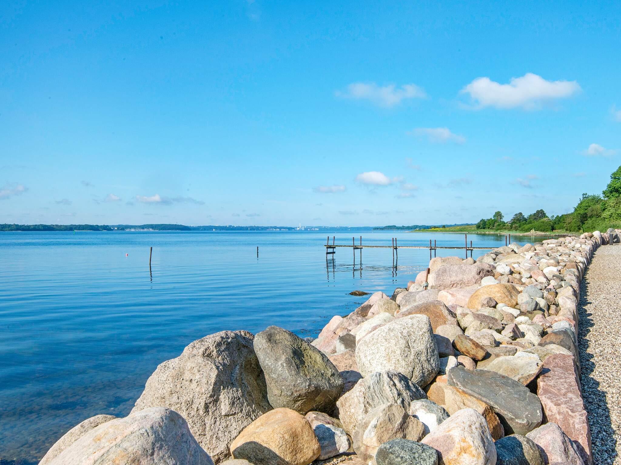 Sie wohnen hier unweit der deutschen Grenze in ruhiger Umgebung, direkt am attraktiven Badestrand. Nur 2 km weiter liegt an der Küste ein attraktiver Golfplatz. Gute Angelmöglichkeiten in der Förde.