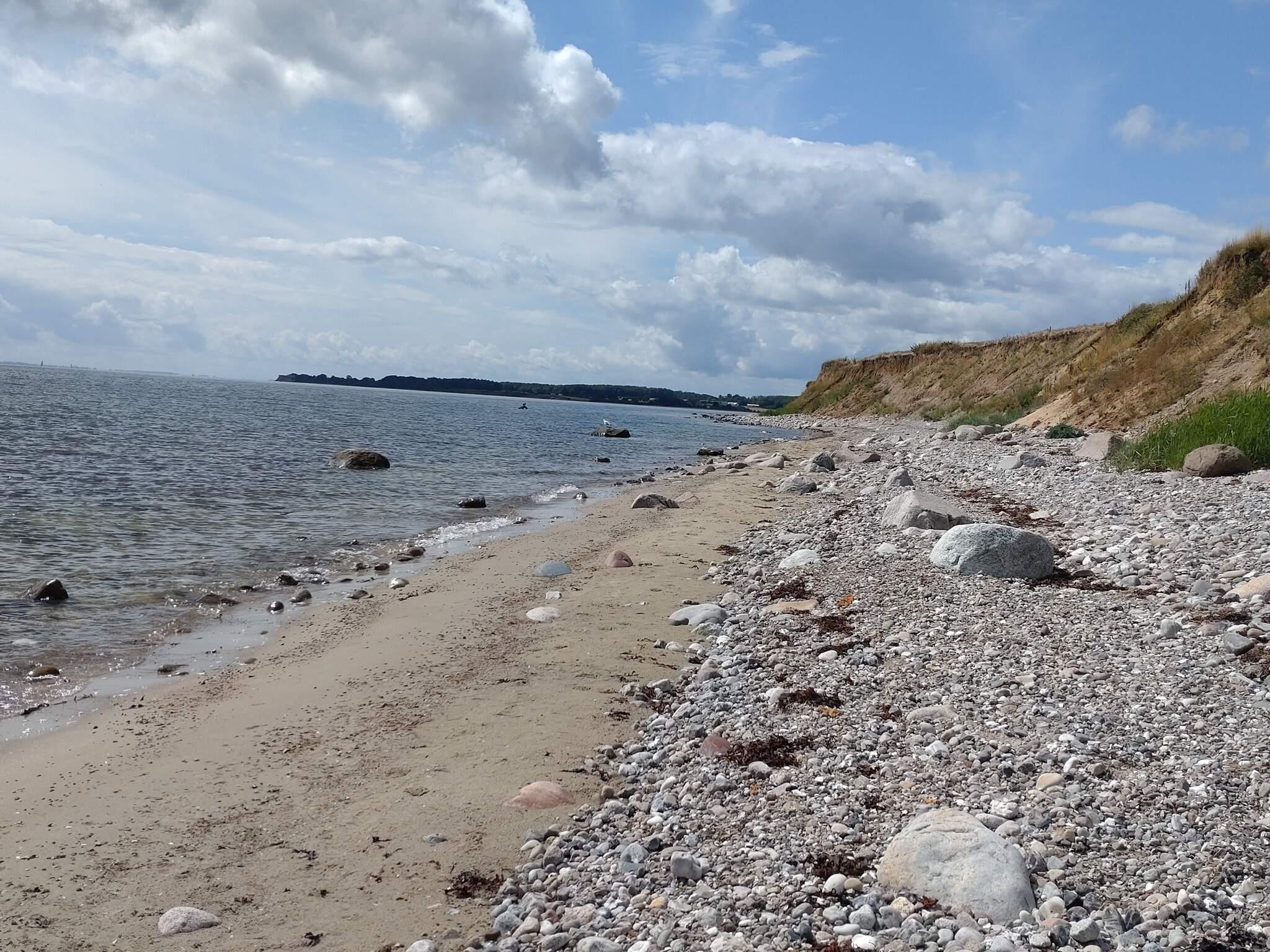 Ferienhaus bei Flovt Strand, ca. 300 m vom Wasser entfernt gelegen. Die Küche ist offen mit dem Wohnzimmer verbunden, in dem es einen Holzofen gibt. Die Schlafplätze verteilen sich auf zwei Schlafzimmer mit Doppelbetten und eines mit zwei Einzelbetten. Vor dem Wohnzimmer liegt die teilweise überdachte Terrasse. Im Garten steht eine Schaukel und ein Sandkasten für Kinder bereit. Keine Vermietung an Jugendgruppen.