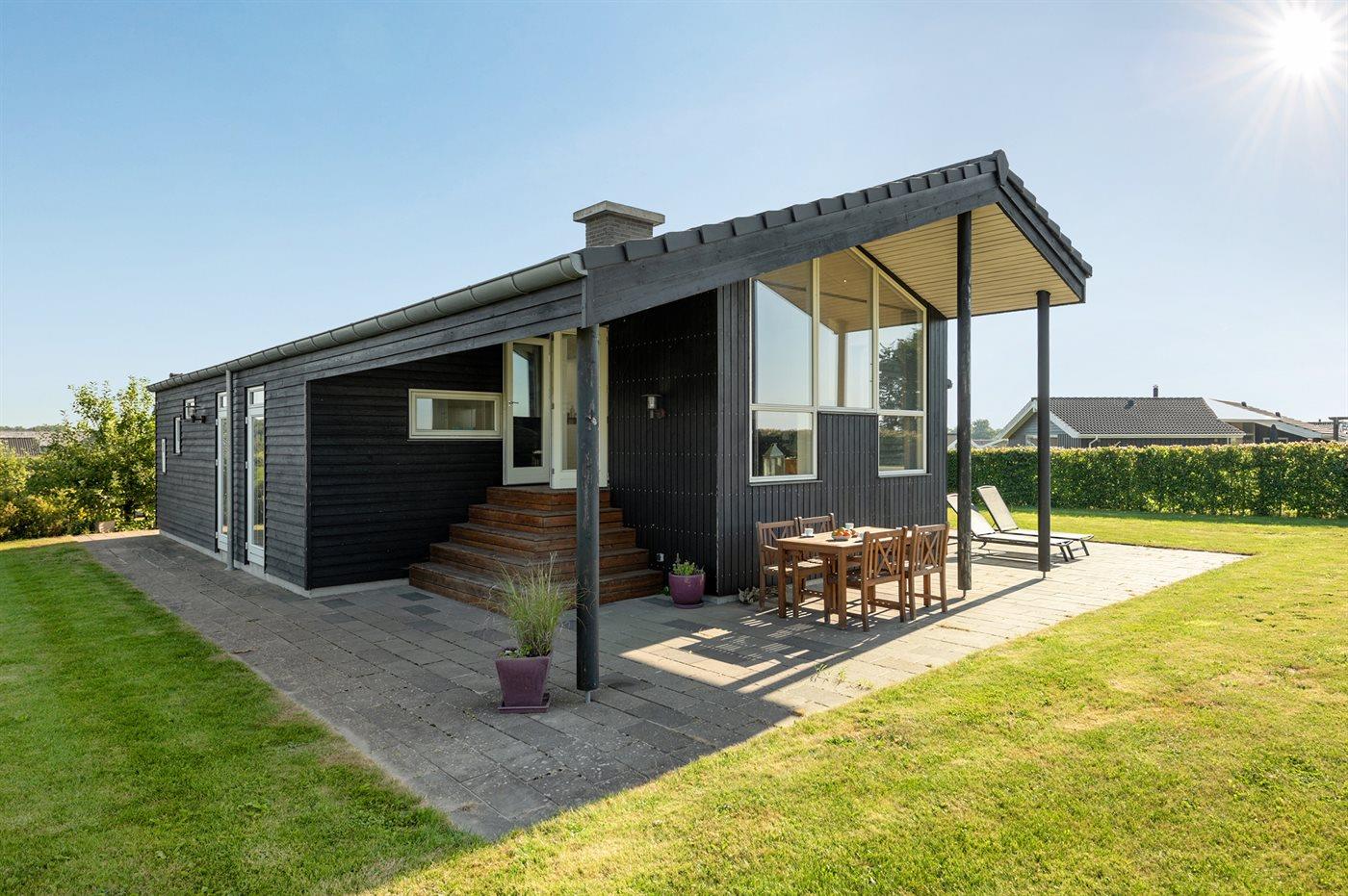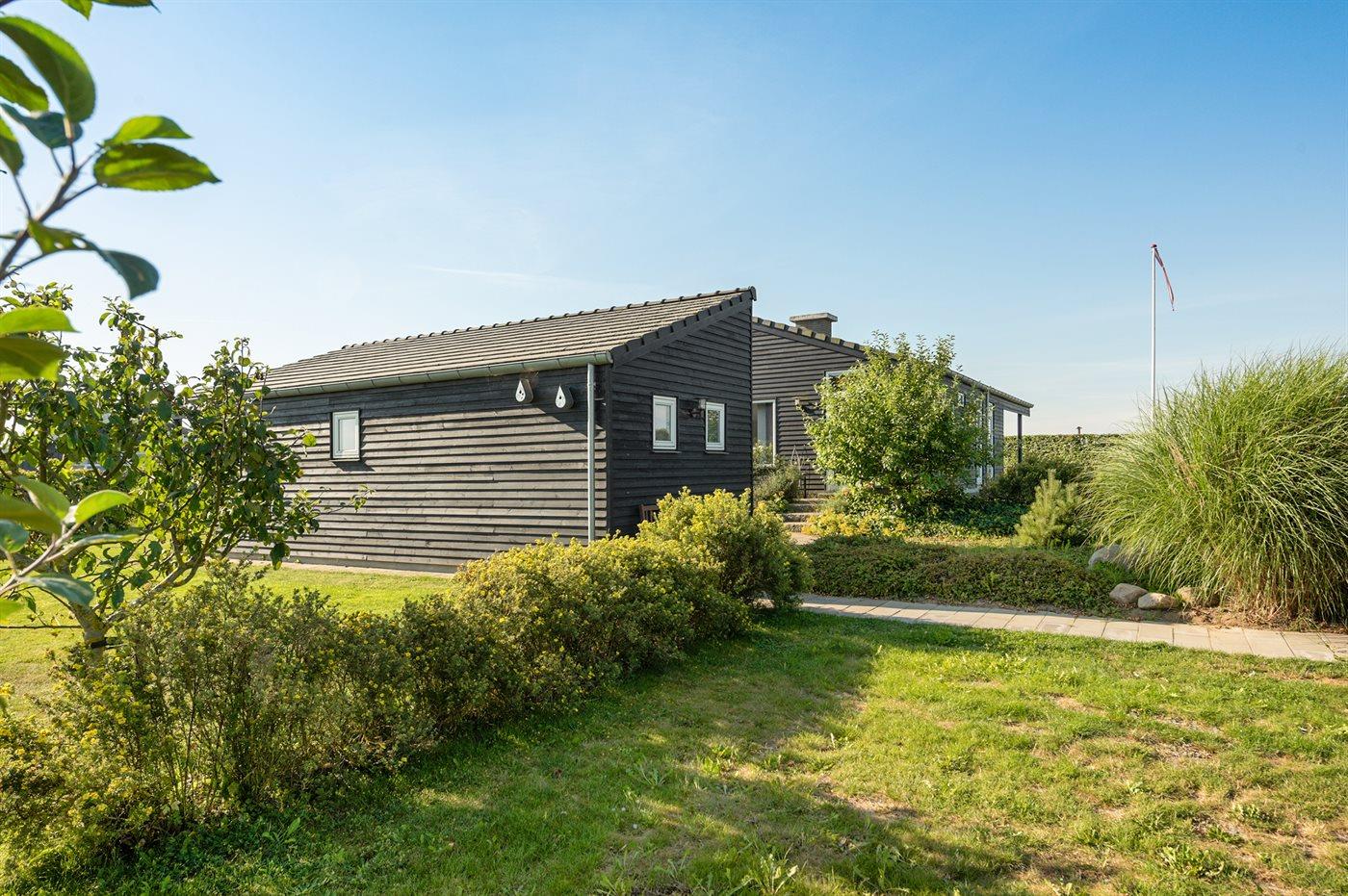 Modernes Ferienhaus mit Meerblick, Sauna und Whirlpool nahe Flovt Strand in Dänemark.