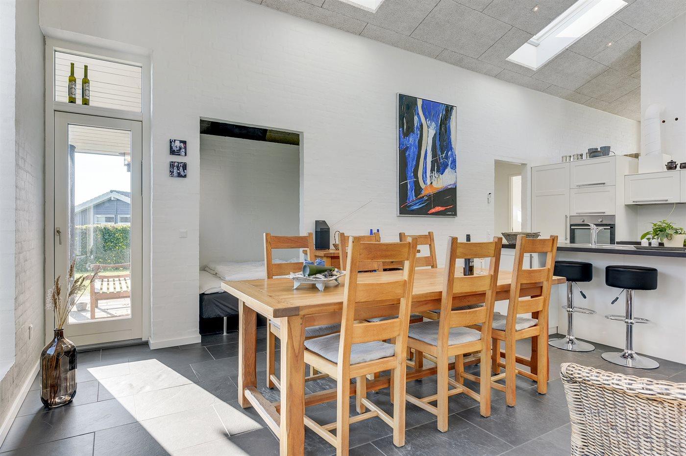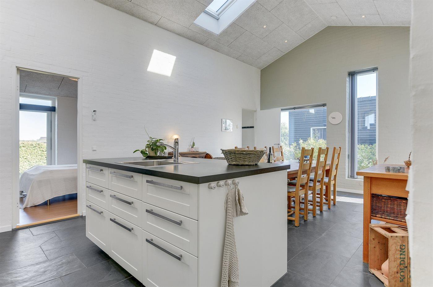 Dieses tolle Ferienhaus liegt in einer hübschen Ferienhaussiedlung am Flovt Strand. Das Haus besticht mit einer schönen Einrichtung, und durch die erhöhte Lage des Wohnzimmers haben Sie eine großartige Aussicht auf die offenen Felder und können in der Ferne sogar das Wasser erkennen. Das Haus verfügt über schöne Terrassen, auf denen Sie den ganzen Tag über die Sonne genießen können. Das Haus ist die perfekte Unterkunft für einen rundum gelungenen Urlaub mit Ausflügen in die nähere Umgebung.