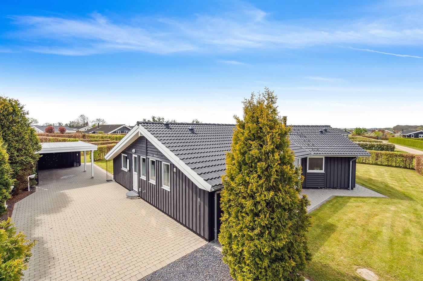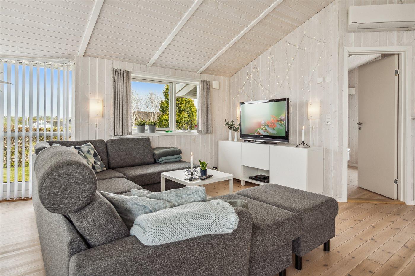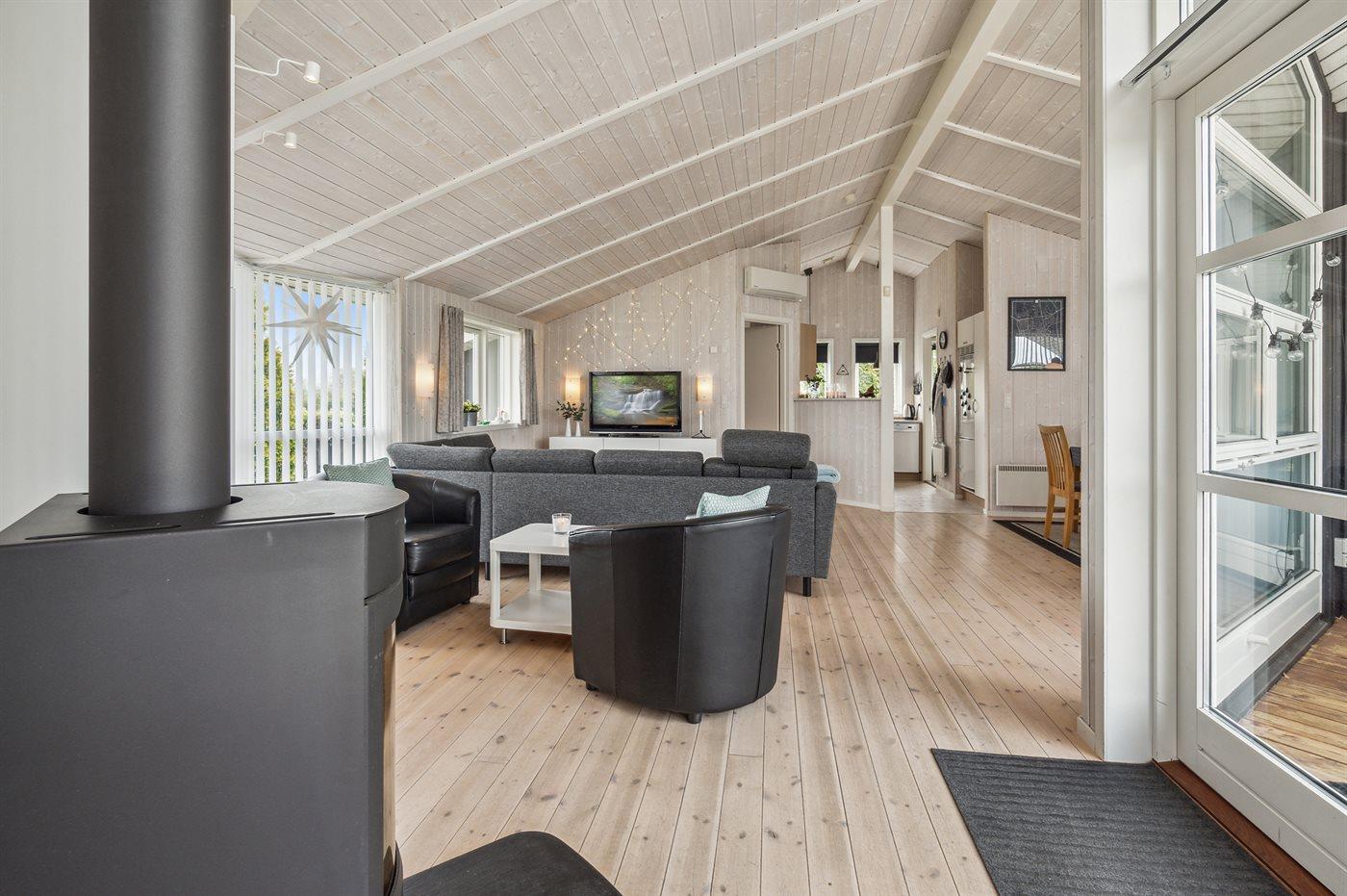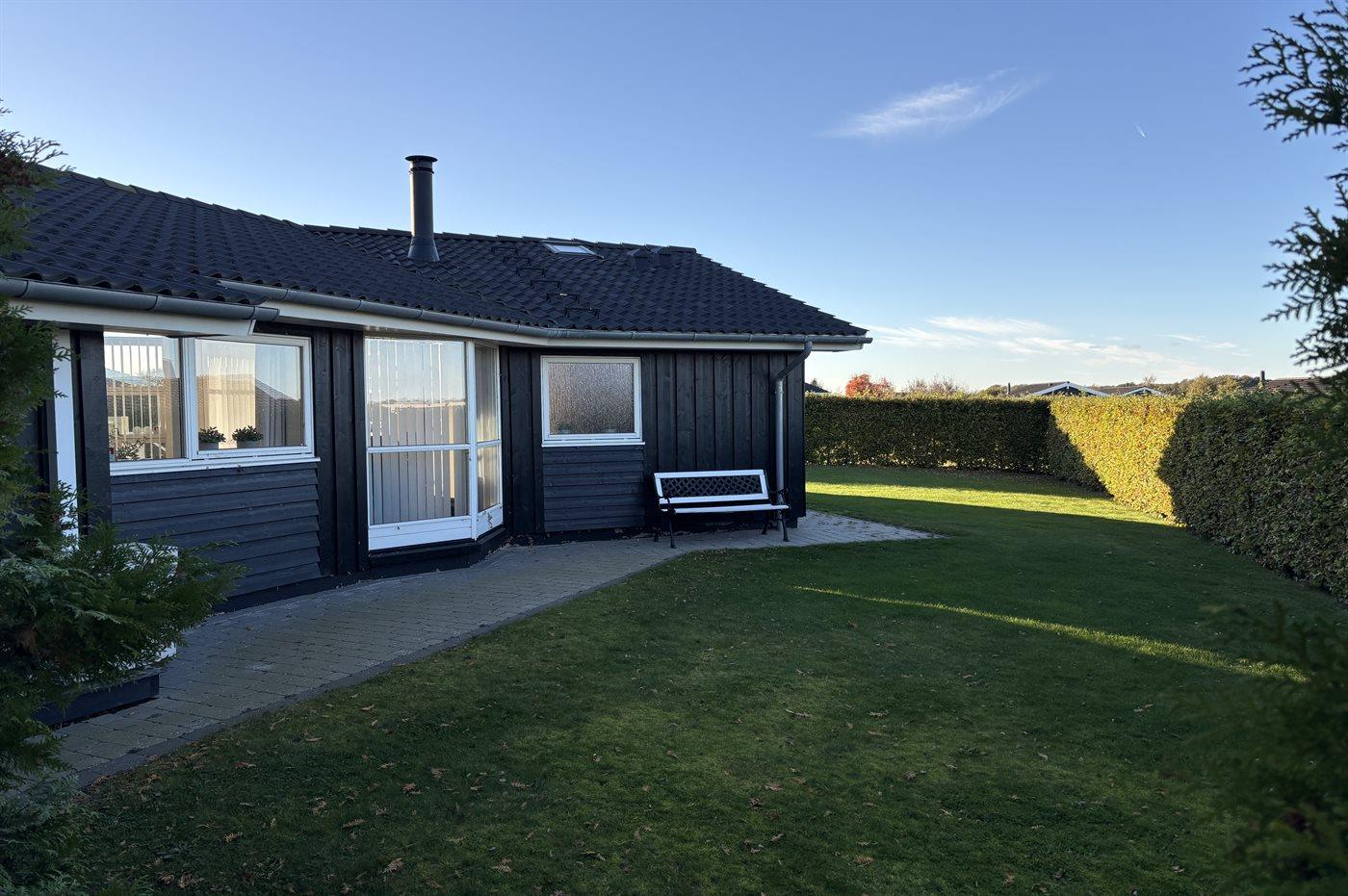 Dieses schöne Ferienhaus liegt im Ferienhausgebiet Flovt Strand – dicht an einem schönen, kinderfreundlichen Badestrand.