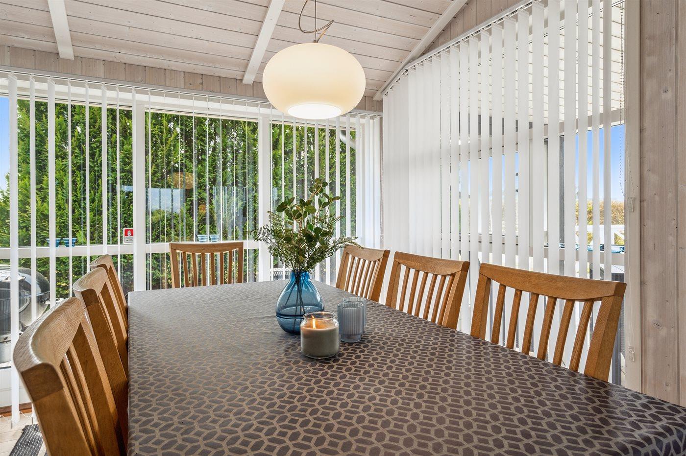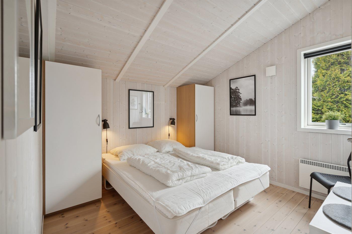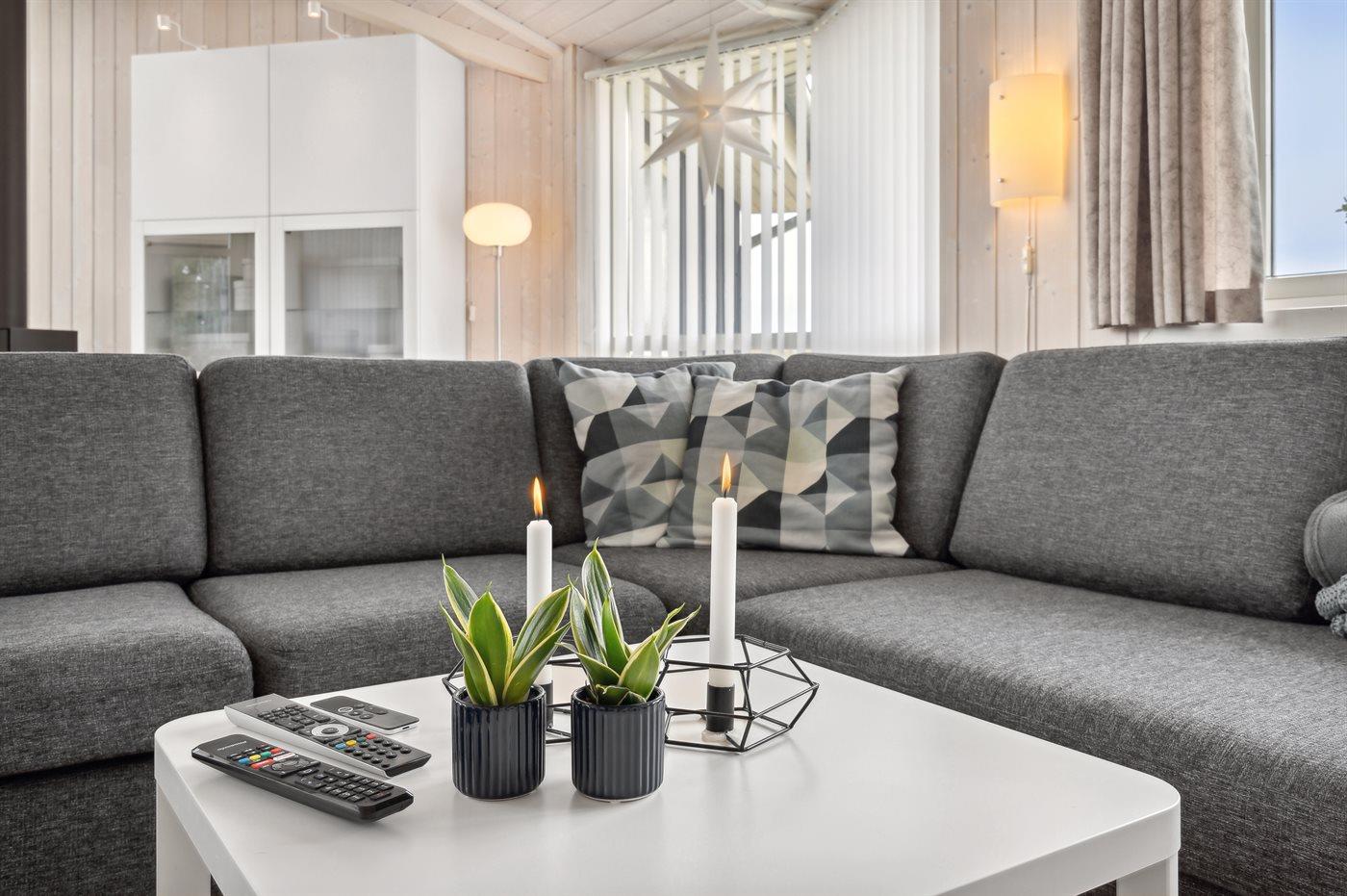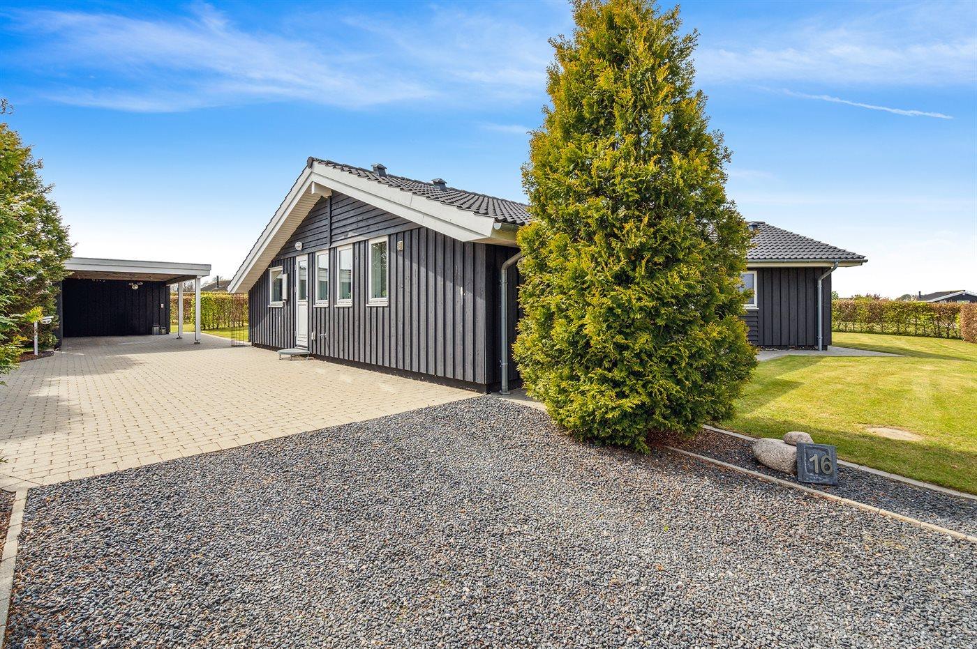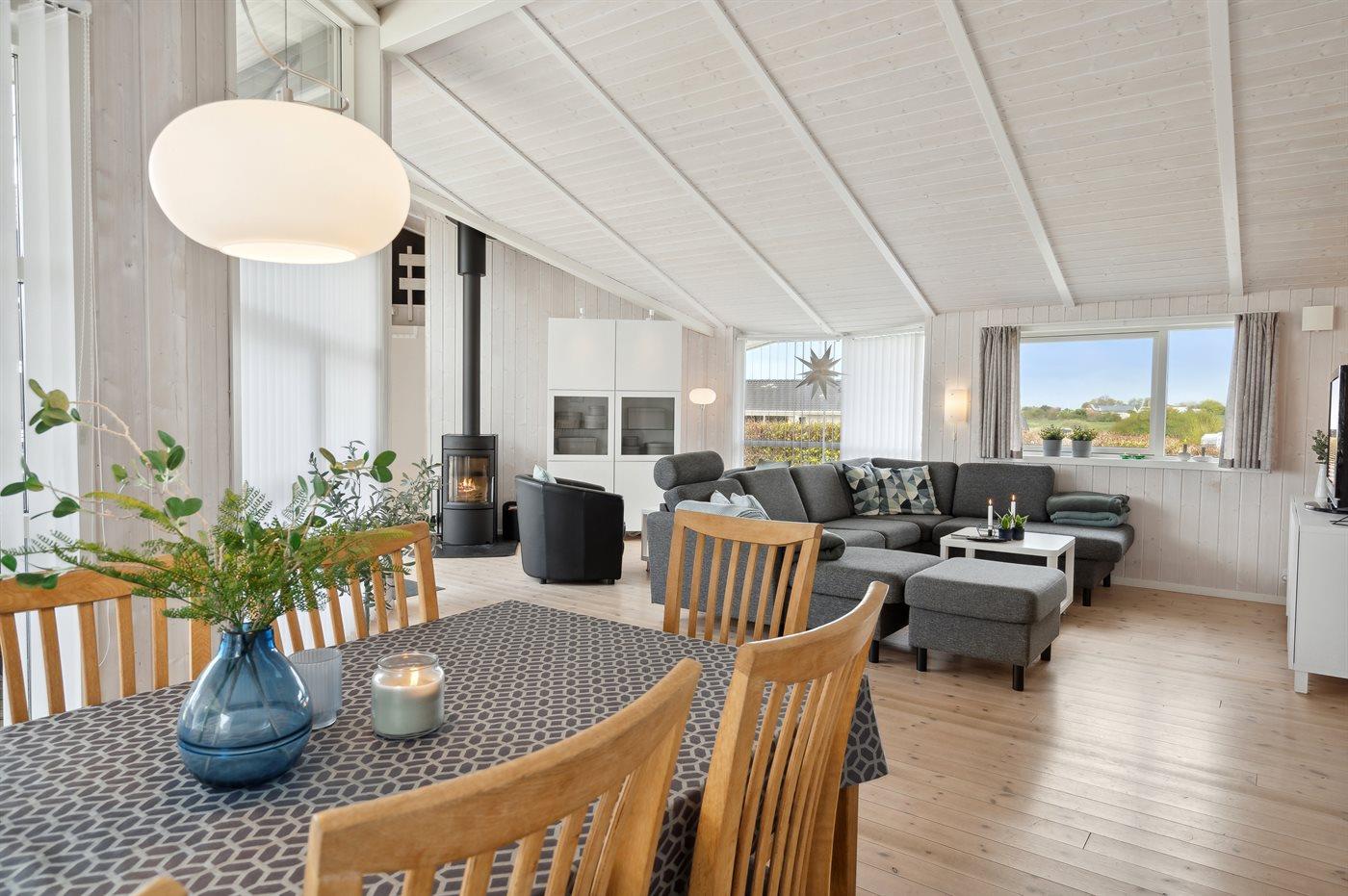 Dieses schöne Ferienhaus liegt im Ferienhausgebiet Flovt Strand – dicht an einem schönen, kinderfreundlichen Badestrand.