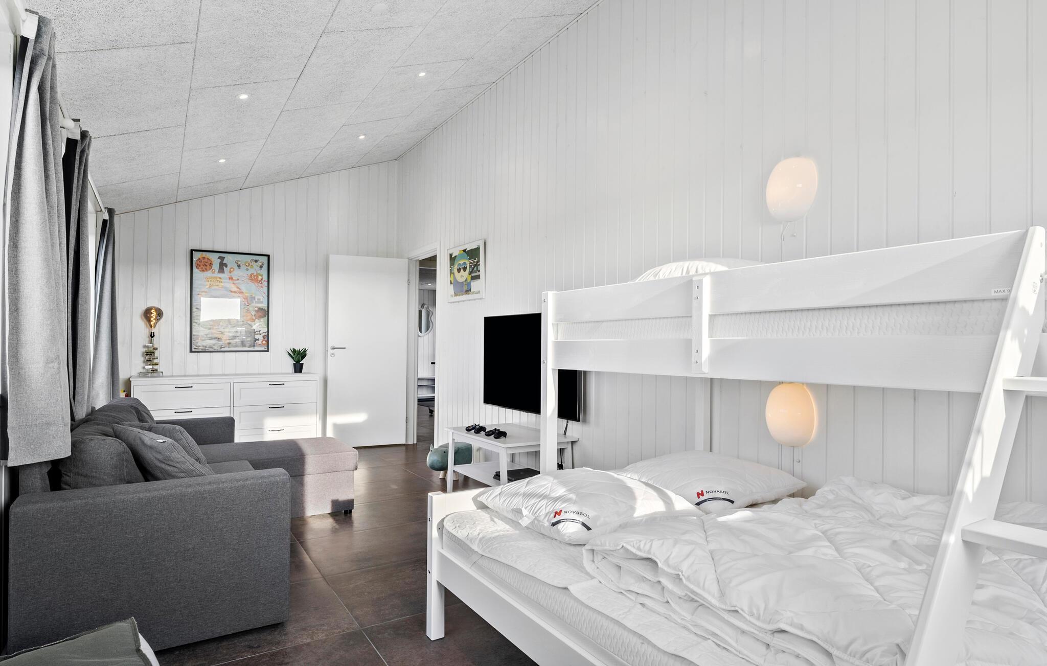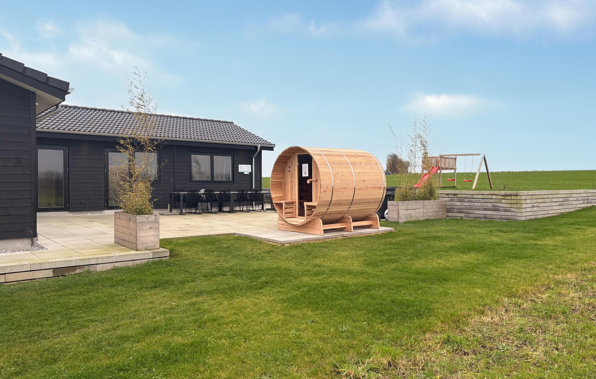 Modernes Ferienhaus in Flovt mit Wellness, Spielzimmer und Strandnähe für erholsame Tage.