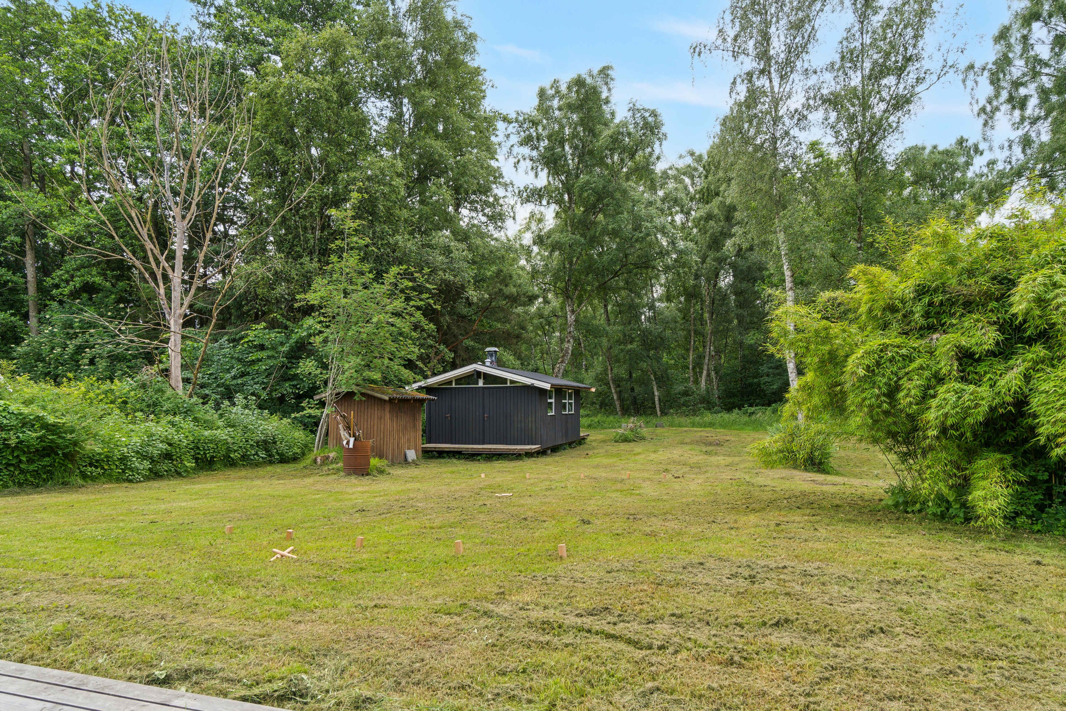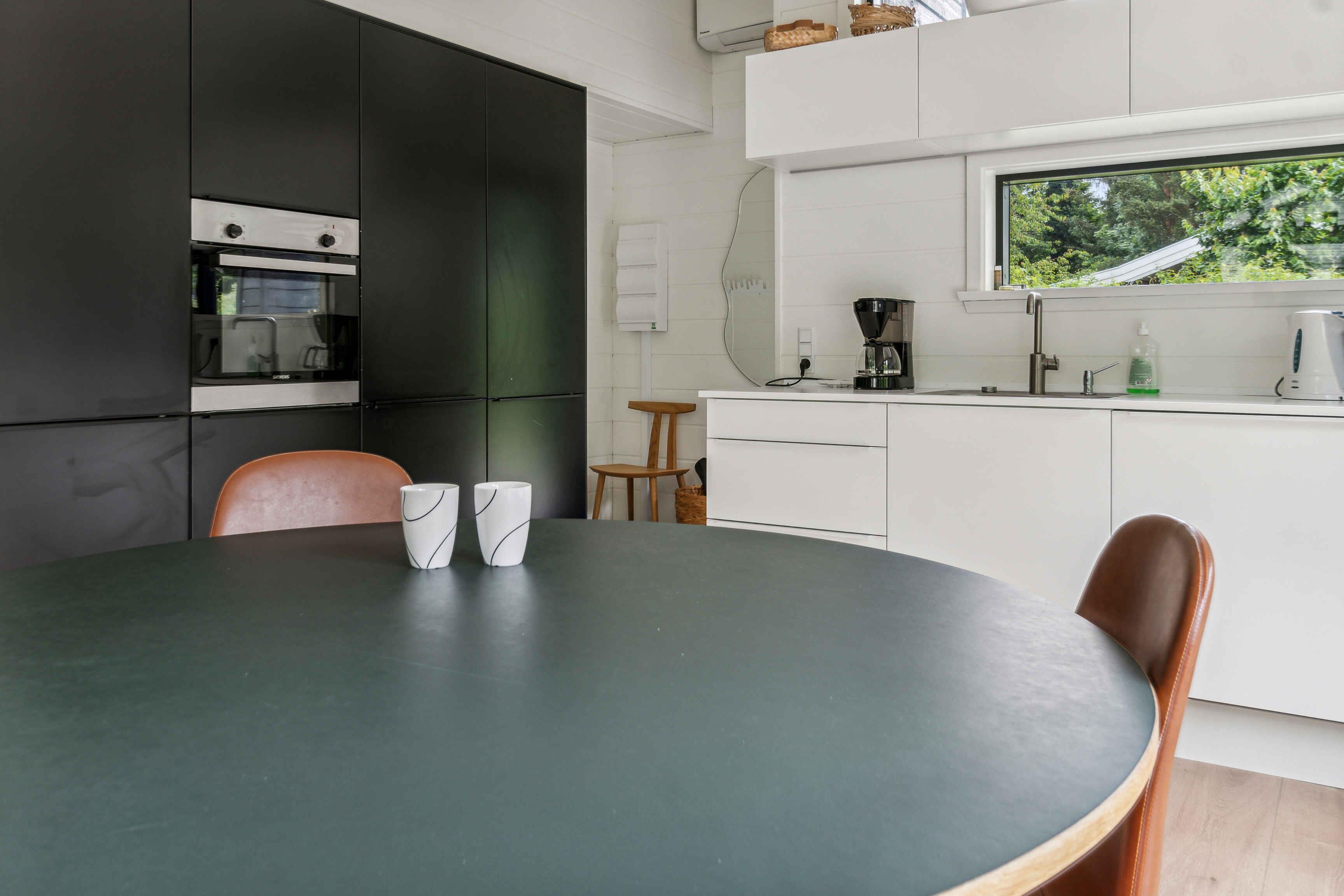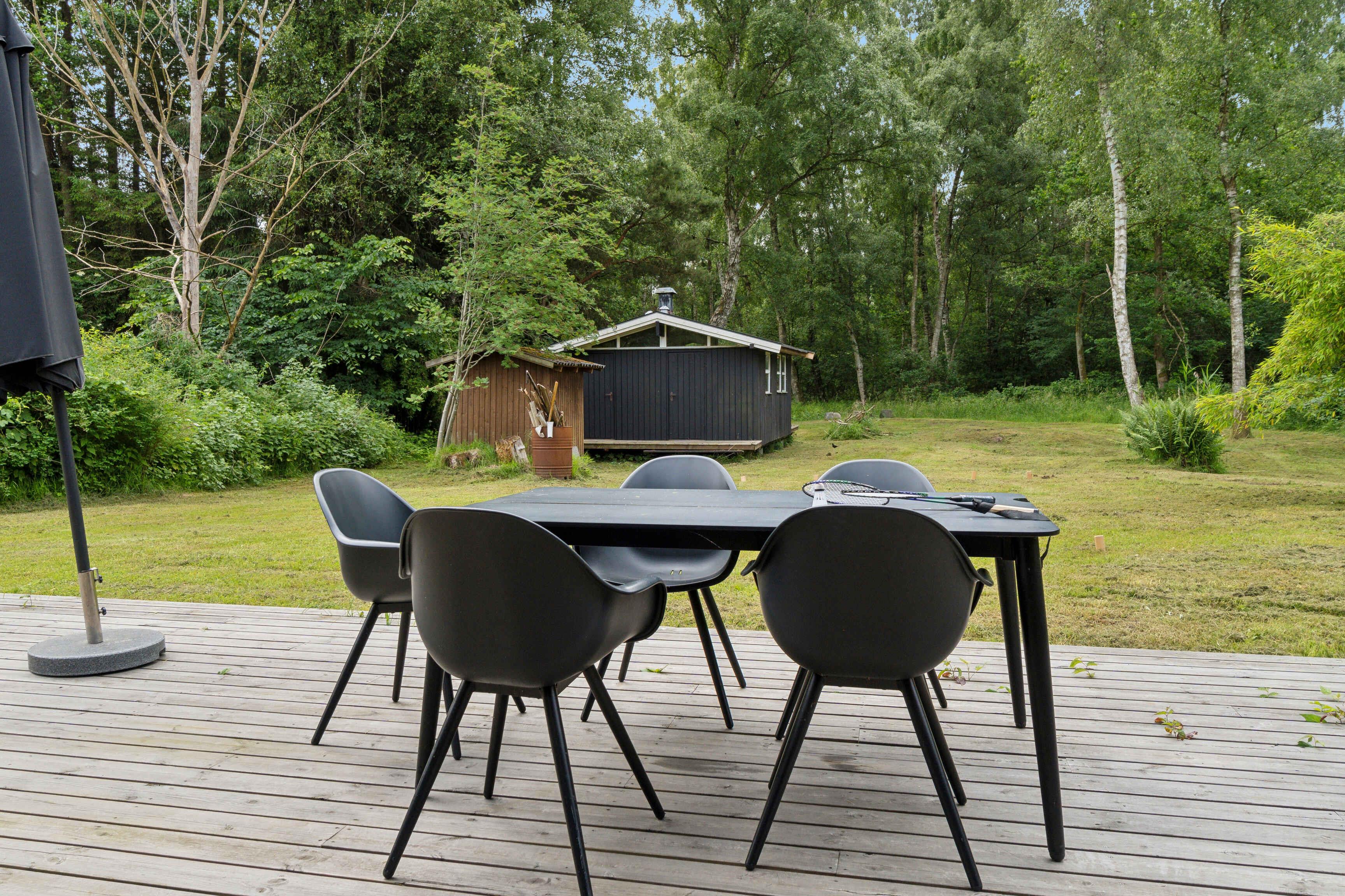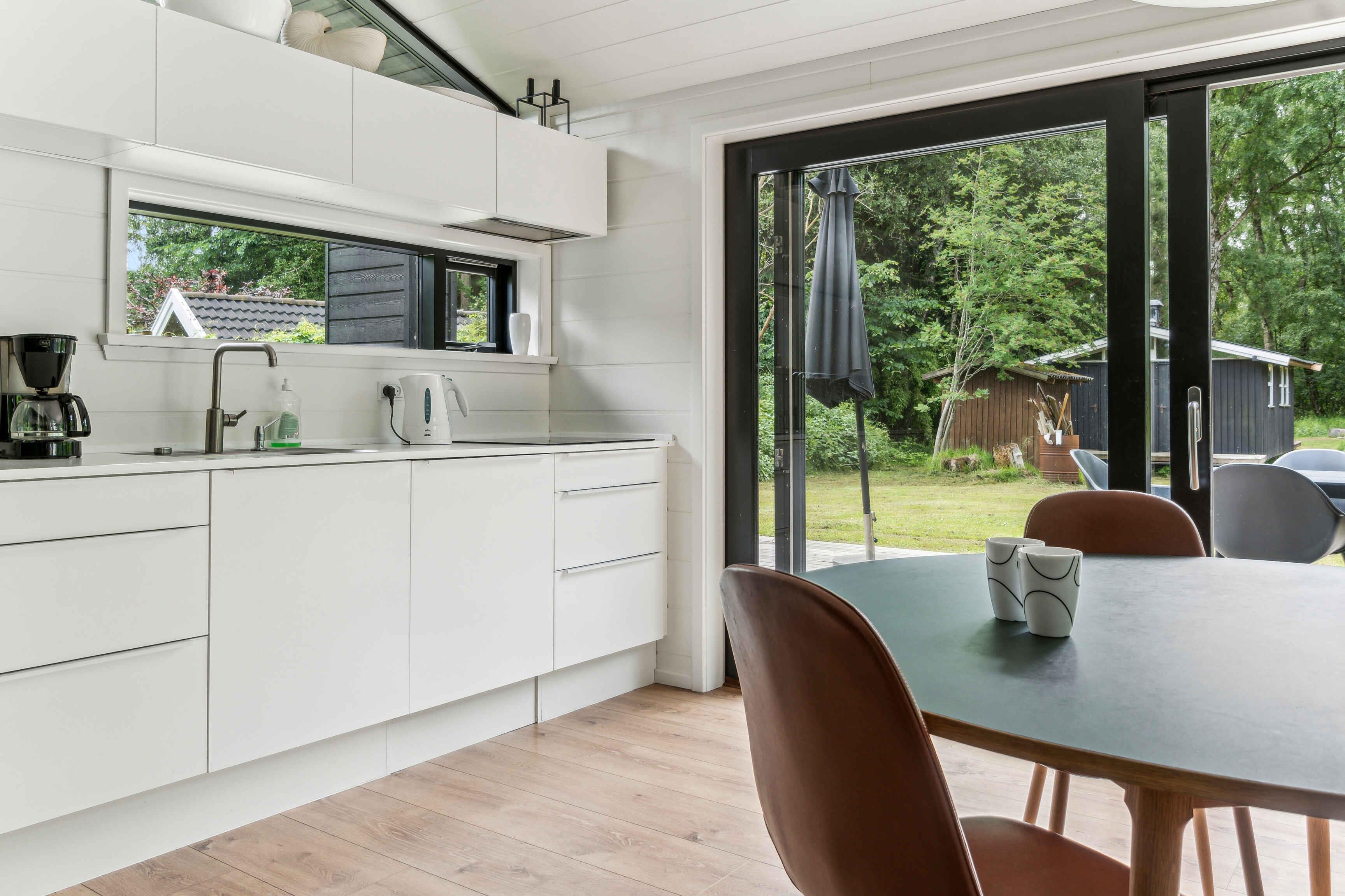 Im malerischen Ferienhausgebiet in Asserbo, umgeben von üppigen Wäldern und ruhiger Natur, finden Sie dieses moderne und stilvolle Ferienhaus, erbaut im Jahr 2020. Das Ferienhaus ist mit einer hellen und geräumigen Küche/Wohnzimmer eingerichtet, wo die gut ausgestattete Küche alles enthält, was Sie für die Zubereitung köstlicher Mahlzeiten benötigen. Hier finden Sie ein Induktionskochfeld, einen Kühl-/Gefrierschrank und einen Geschirrspüler, die das Kochen und Aufräumen einfach und bequem machen. Das Wohnzimmer, eingerichtet mit einem gemütlichen Kaminofen und einer effizienten Luft/Luft-Wärmepumpe, lädt zu entspannenden Momenten vor dem Kamin ein. Hier können Sie auch moderne Annehmlichkeiten wie Internetzugang und einen Fernseher mit Chromecast genießen, mit dem Sie Ihre Lieblingsfilme und -serien streamen können. Vom Wohnzimmer aus haben Sie direkten Zugang zu einer offenen und einer geschlossenen Terrasse, von denen aus Sie die schöne Aussicht auf den Garten und den umliegenden Wald genießen können. Die Terrasse ist ideal sowohl zum Sonnenbaden als auch für gemütliche Grillabende an warmen Sommerabenden. Das Ferienhaus verfügt über drei gut eingerichtete Schlafzimmer. Zwei der Zimmer sind mit komfortablen Doppelbetten ausgestattet, während das dritte Zimmer ein Etagenbett mit Platz für drei Personen hat – perfekt für Familien mit Kindern oder Gruppen von Freunden. Das Badezimmer ist modern und stilvoll, ausgestattet mit einer geräumigen Dusche und Fußbodenheizung, die auch an kühlen Tagen für ein angenehmes Erlebnis sorgt. Der Außenbereich ist eine Oase der Entspannung und Gemütlichkeit. Auf der Terrasse stehen bequeme Gartenmöbel, wo Sie Ihren Morgenkaffee genießen oder in der Sonne ein gutes Buch lesen können. Das Naturgrundstück bietet sowohl eine Feuerstelle, an der Sie abends zusammenkommen und Marshmallows rösten können, als auch eine Hängematte zur Entspannung im Schatten der Bäume und einen Grill, der zum Kochen im Freien und zu gemütlichen Mahlzeiten im Freien einlädt. Dieses Ferienhaus wird nicht an Jugendgruppen vermietet, was eine ruhige und entspannte Atmosphäre für alle Gäste gewährleistet. Es ist der ideale Ort für Familien und Freunde, die einen friedlichen und malerischen Urlaub mit modernem Komfort und Annehmlichkeiten genießen möchten. Ob Sie die umliegenden Waldgebiete erkunden, sich in der Sonne auf der Terrasse entspannen oder einen gemütlichen Abend am Kaminofen genießen möchten, dieses Ferienhaus in Asserbo bietet den perfekten Rahmen für einen unvergesslichen Urlaub.