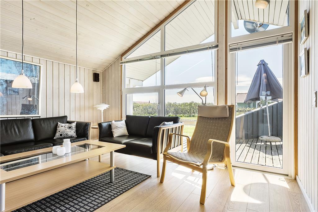 Auf dem großen, offenen Grundstück gibt es viel Platz für Spiel und Sport, und die Kleinen können sich im Sandkasten austoben. Das Ferienhaus bietet teilweise abgeschirmte und überdachte Terrassen nach Süden und Osten sowie eine kleinere Terrasse nach Westen, was ideale Bedingungen bietet, um den dänischen Sommer in vollen Zügen zu genießen – mit Sonnenbaden, Grillabenden und langen, warmen Nächten. Gartenmöbel, Liegestühle und ein Grill stehen Ihnen im Haus zur Verfügung.