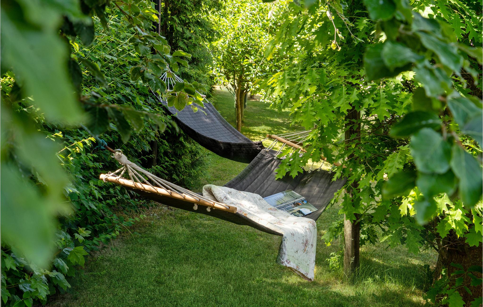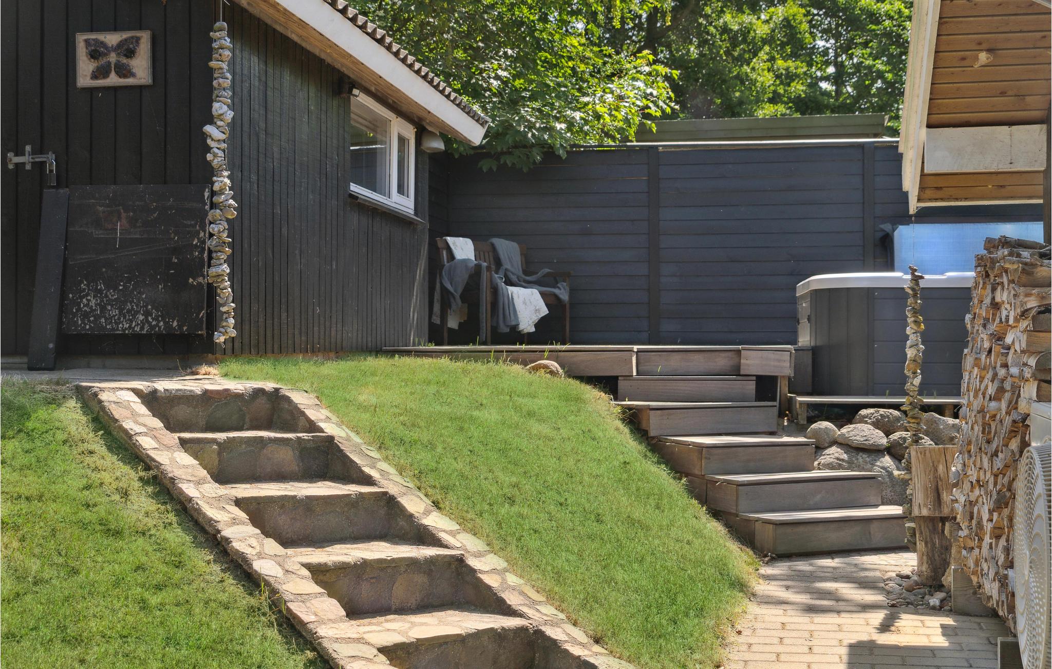 Das einladende Haus ist von einem schönen Garten umgeben. Hier finden Sie nicht nur Naturidylle, sondern auch einen schönen Outdoor-Spa, wo Sie sitzen und das Leben genießen können. Anschließend können Sie sich unter der Außendusche abwaschen und sich in die Sonne legen.