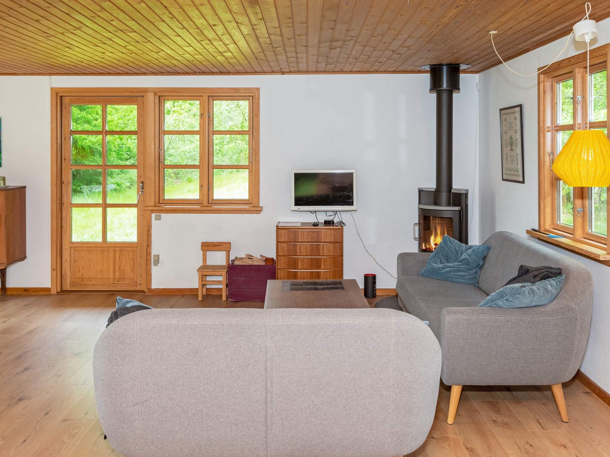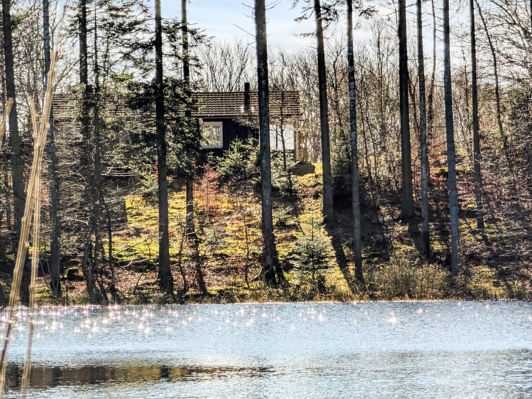 Auf der Holzterrasse mit Gartenmöbeln und Grill können Sie sonnige Tage oder entspannte Abende genießen. Ein Kanu steht Ihnen ebenfalls zur Verfügung, um den See zu erkunden. Die Umgebung lädt zu Spaziergängen in der Natur und erholsamen Momenten ein. Golfliebhaber werden die Nähe zum Himmerland Golf & Spa Resort mit seinen zwei 18-Loch-Golfplätzen in weniger als 2 km Entfernung zu schätzen wissen. Parkplätze stehen am Fuße des Hügels, der zum Haus hinaufführt, zur Verfügung. Dies kann bei Glätte von Vorteil sein.