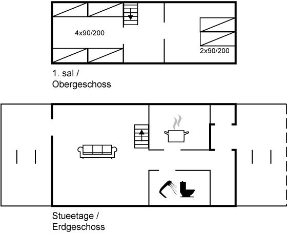 Die Schlafplätze verteilen sich auf 2 Schlafräume. 2 Schlafplätze in einem Doppelbett. 4 Schlafplätze in Einzelbetten.