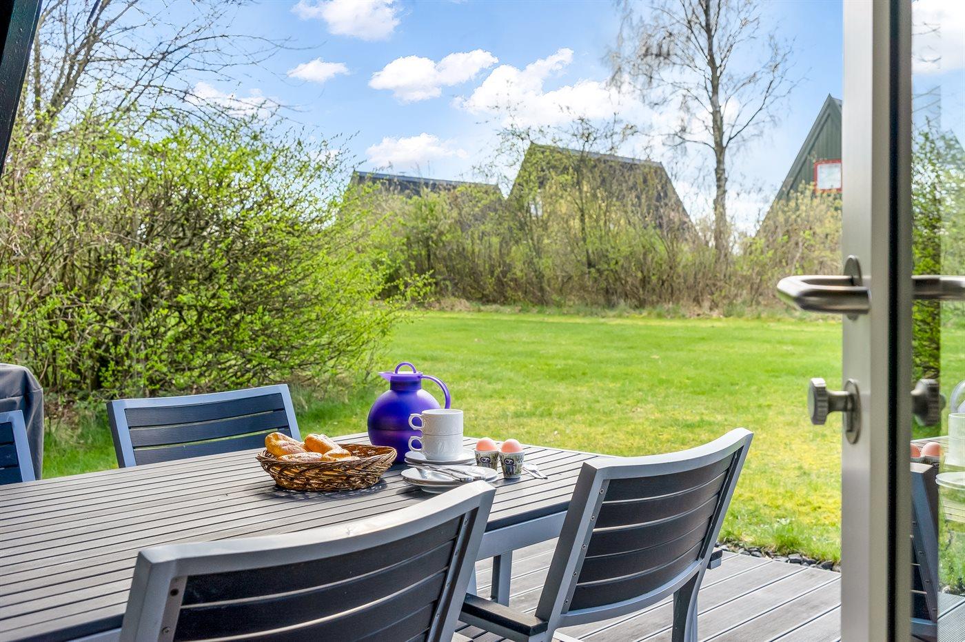 Die Ferienunterkunft liegt auf einem 234 m² großen Gartengrundstück. Die Entfernung zum Fjord beträgt 18000 m. Die Entfernung zu einem See beträgt 800 m. Es gibt einen Badesteg in der Nähe. Die nächste Einkaufsmöglichkeit liegt 500 m entfernt. In einem Abstand von 500 m gibt es einen Golfplatz. Es steht ein offenes Terrassenareal zur Verfügung. Außerdem gibt es überdachte Terrasse. Die Entfernung zu einem Spielplatz beträgt 400 m. Es steht ein Grill zur Verfügung. Parkplatz auf dem Grundstück.
