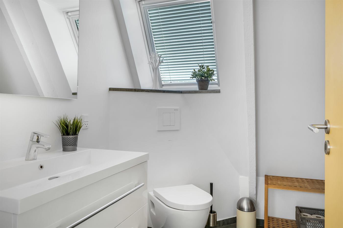 Es gibt 1 Badezimmer mit Duschnische und 2 Toiletten, davon 1 Gästetoilette. Fußbodenheizung in 1 Badezimmer.