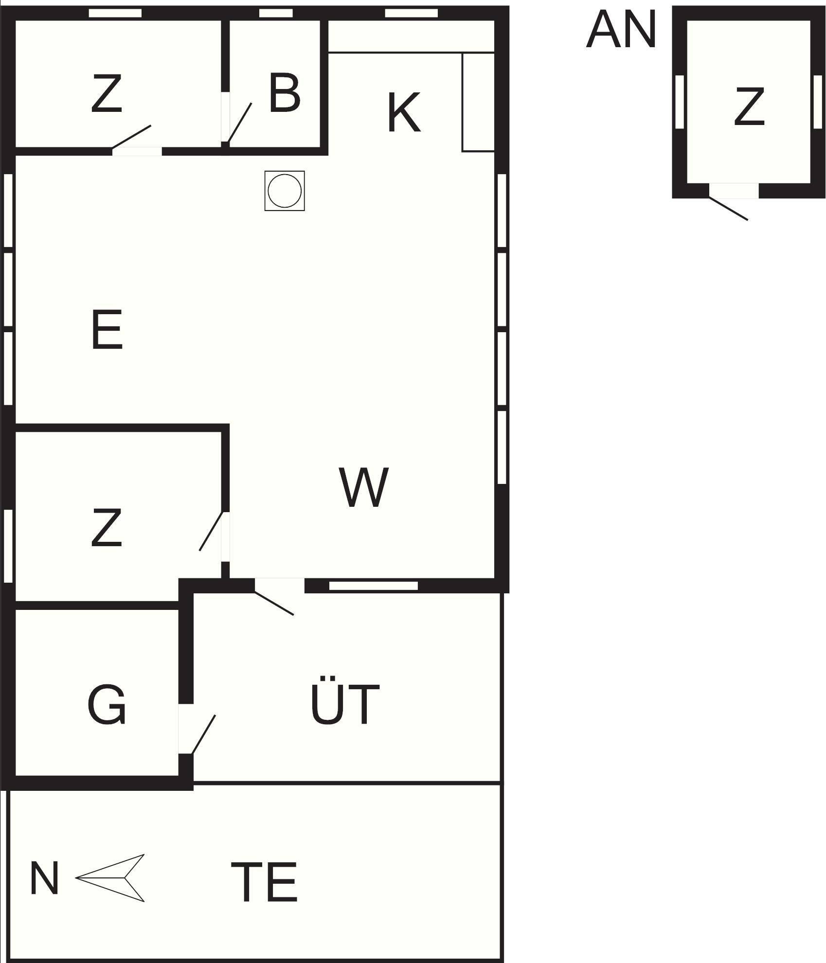 Gut instand gehaltenes Ferienhaus bei Gedesby. Liegt auf einem schön begrünten Naturgrundstück mit Bäumen. Zur Verfügung steht sowohl eine überdachte Holzterrasse als auch eine offene Terrasse für z.B. sonnige Grillabende. Zum Haus gehört ein gut eingerichteter Annex mit zwei Schlafplätzen und Heizung. Keine Vermietung an Jugend- oder Handwerkergruppen erwünscht!