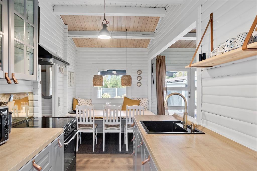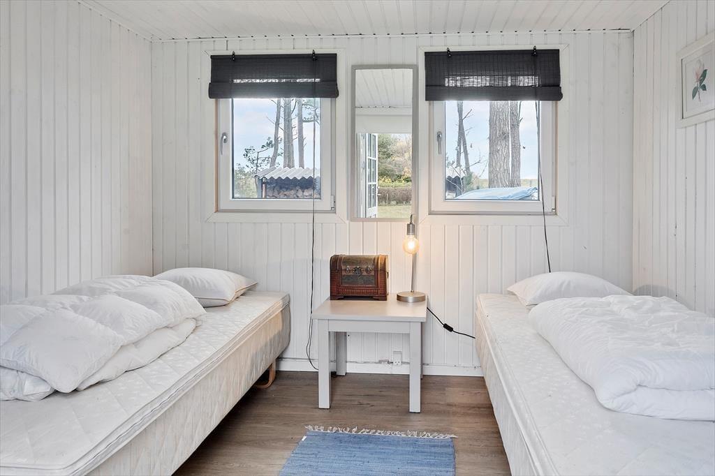 Das Ferienhaus verfügt über 2 gute Schlafzimmer, von denen das eine mit 1 Doppelbett und das andere mit 2 Einzelbetten ausgestattet ist. Das Haus verfügt über einen Anbau im Garten, in dem sich 2 Einzelbetten befinden. Darüber hinaus verfügt das Haus über ein Badezimmer mit WC, Dusche und Waschmaschine. Das Haus verfügt über die schönste kleine Küche, in der es alles gibt, was Sie im Urlaub brauchen. Von der Küche aus gibt es Zugang zum Essbereich. Schließlich verfügt das Haus über das schönste Wohnzimmer mit Zugang zur schönen Terrasse.