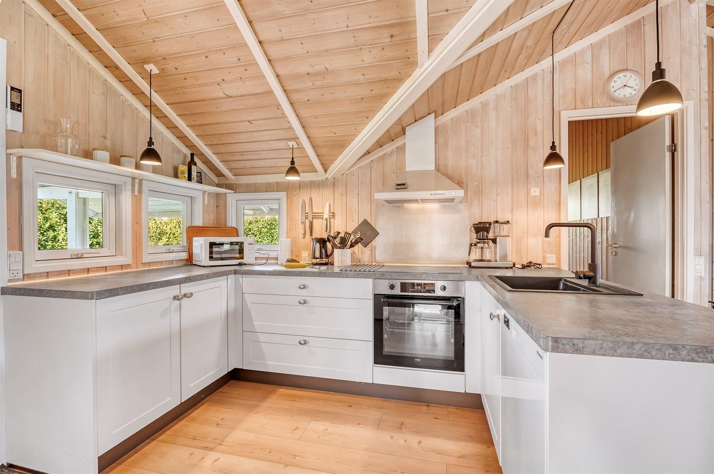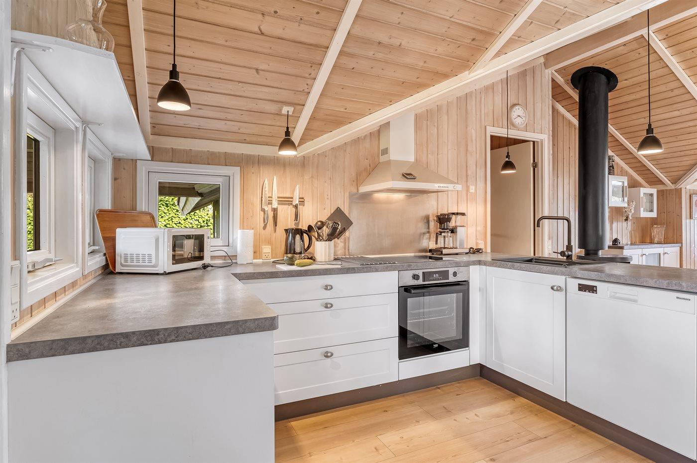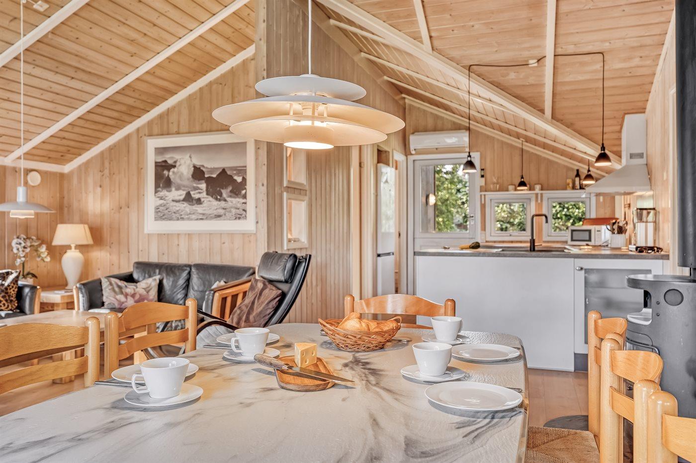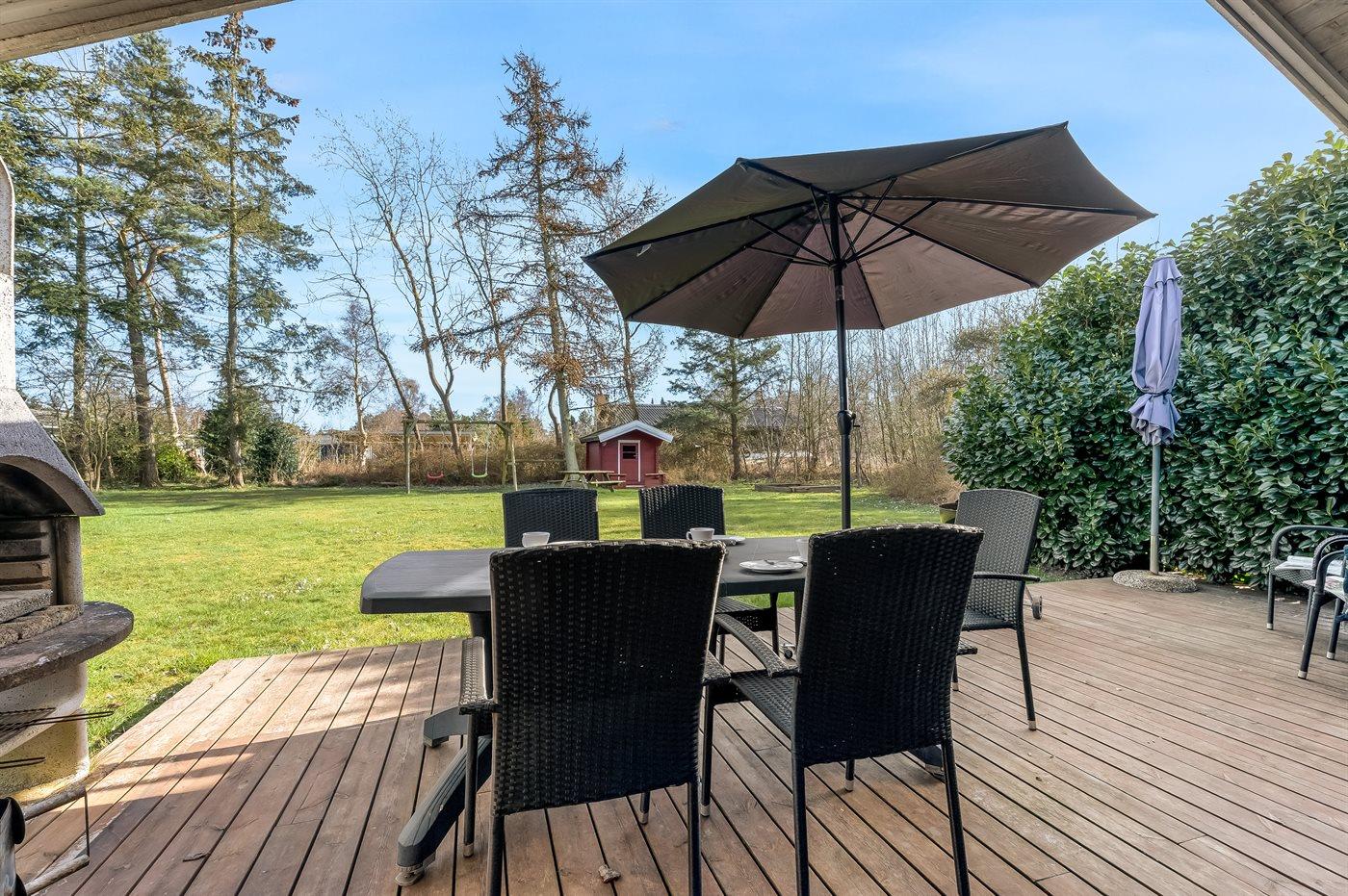 Ein wirklich schönes Ferienhaus aus Holz mit sowohl offenen als auch überdachten Terrassenbereichen mit Gartenmöbeln auf der herrlichen, südlich ausgerichteten Terrasse. Ein gutes Ferienhaus als Ausgangspunkt für einen wunderbaren Urlaub.